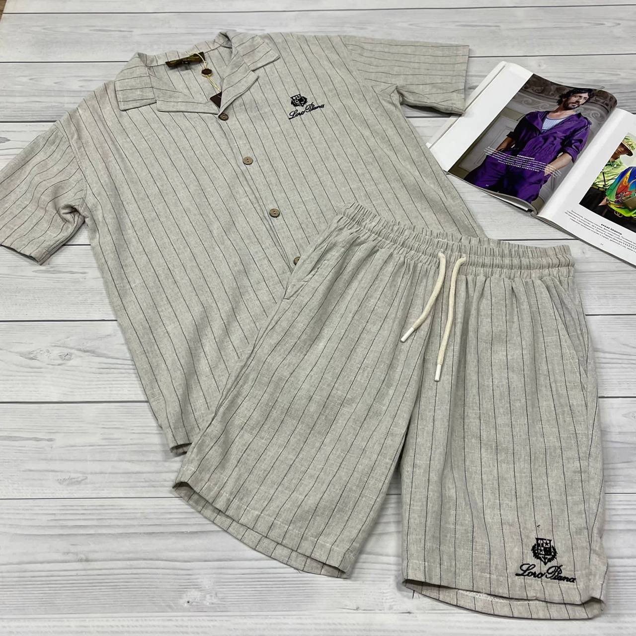 Комплект Loro Piana LUX-72219 – это стильный и комфортный ансамбль в повседневном стиле. Комплект состоит из рубашки с короткими рукавами и шорт, выполненных в светло-сером цвете с тонкими полосами. Предназначен для создания расслабленных летних образов.