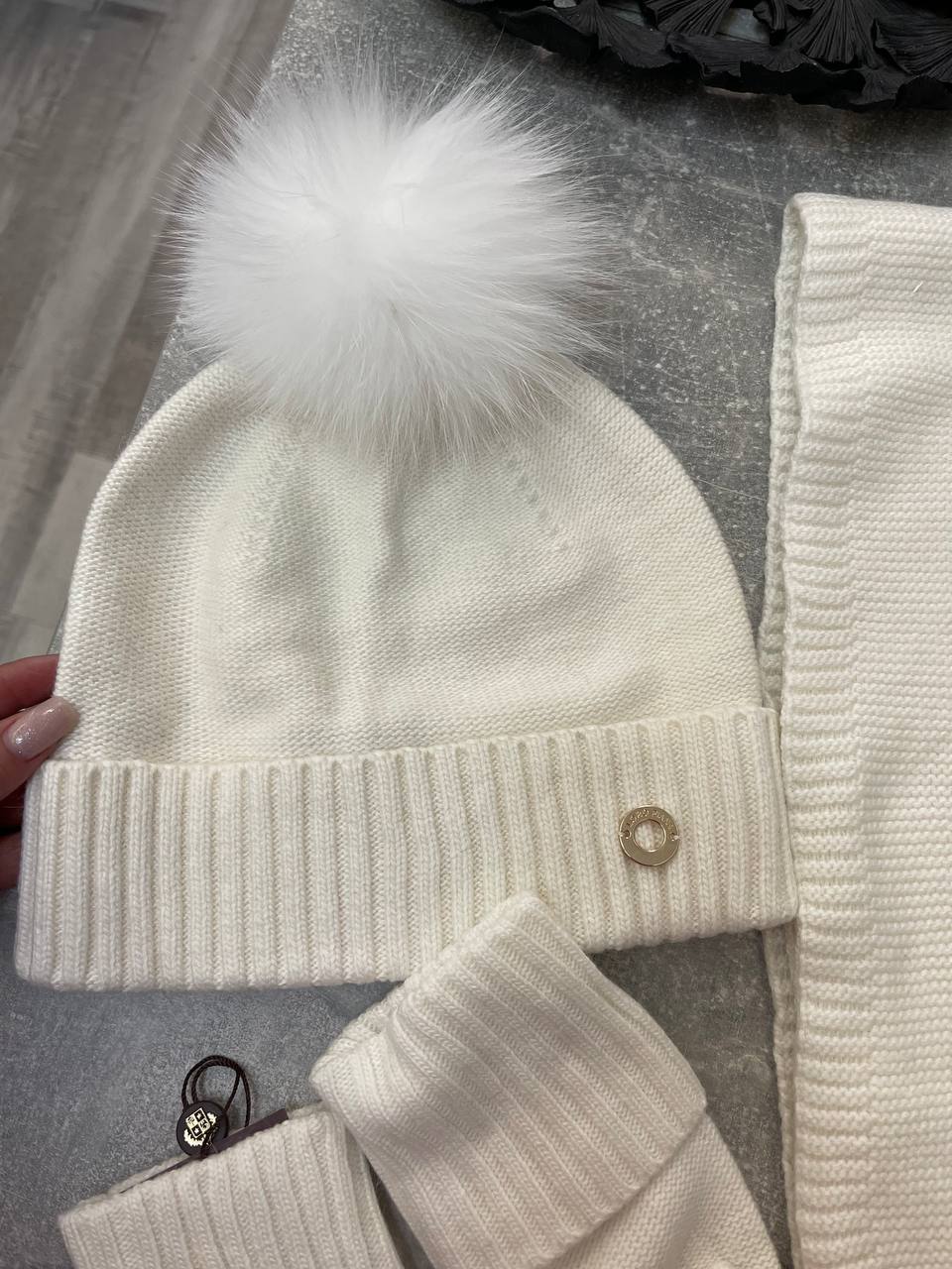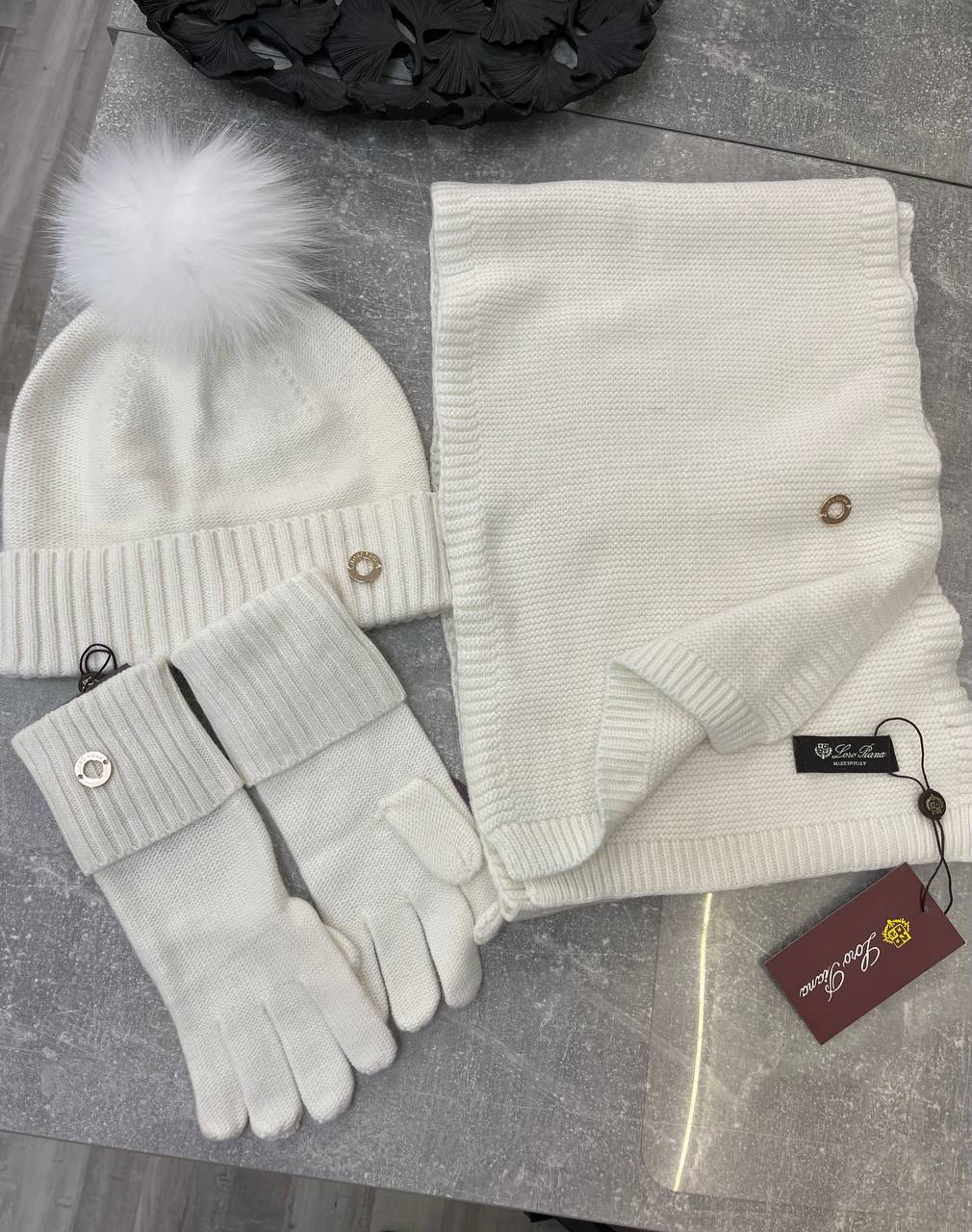 Комплект Loro Piana LUX-99583 – это стильный зимний комплект, состоящий из шапки с помпоном, шарфа и перчаток. Комплект выполнен в белом цвете, что придает ему элегантность и универсальность. Идеально подходит для создания утонченного зимнего образа.