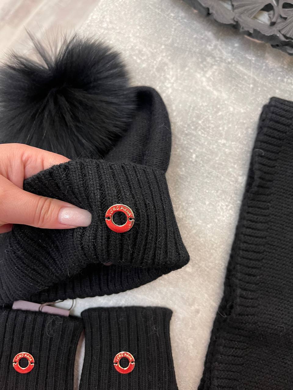 Комплект Loro Piana LUX-99585 — это стильный аксессуар, который идеально подойдет для холодного времени года. Комплект выполнен в классическом черном цвете, имеет гладкую текстуру и состоит из шапки с помпоном, шарфа-снуда и перчаток. Предназначен для повседневной носки, он обеспечит тепло и комфорт.