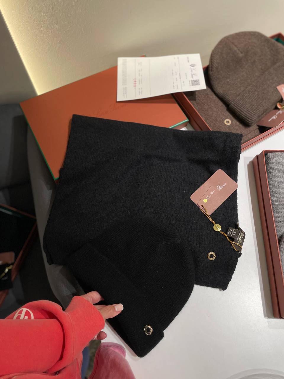 Комплект Loro Piana LUX-125595 включает в себя шапку и шарф-снуд, выполненные в едином стиле. Этот набор станет прекрасным дополнением к вашему гардеробу в холодное время года.