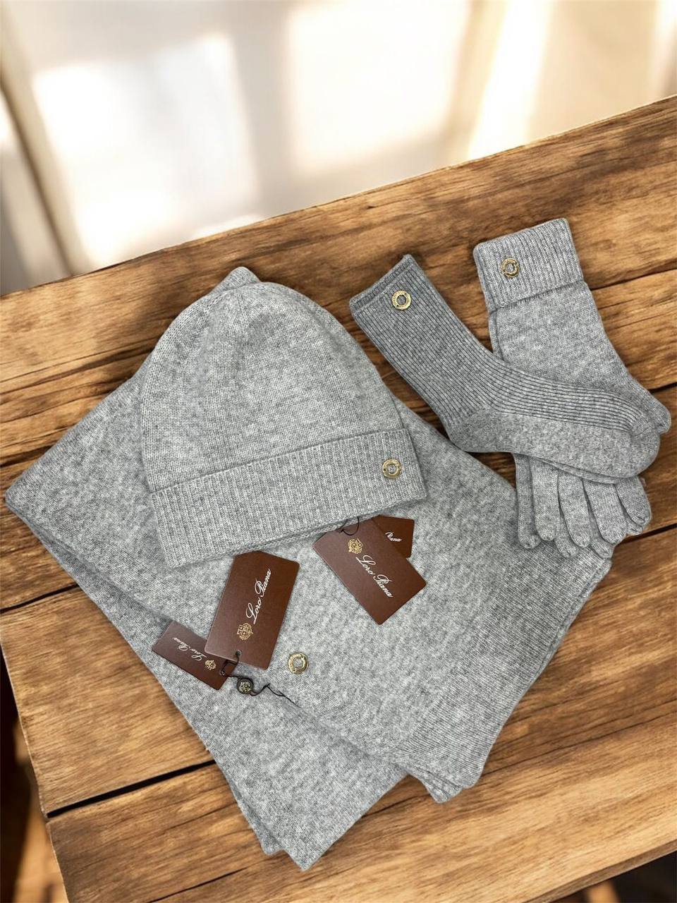 Комплект Loro Piana – это стильный и уютный набор аксессуаров, который идеально подойдет для создания комфортного и элегантного образа в холодное время года. В комплект входят шапка, шарф и перчатки, выполненные в едином стиле.