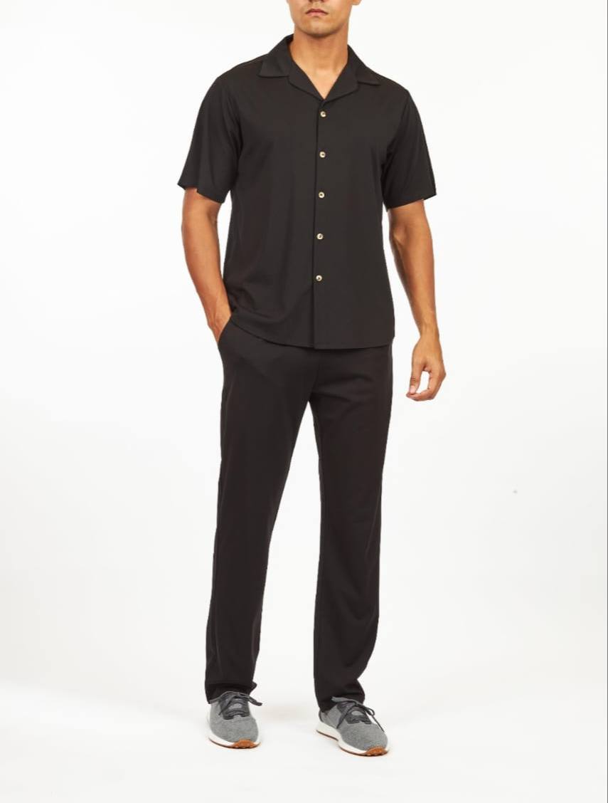Костюм мужской Loro Piana LUX-102066 представляет собой стильный комплект, состоящий из рубашки с коротким рукавом и брюк прямого кроя. Комплект выполнен в черном цвете, что делает его универсальным для различных ситуаций. Этот костюм подойдет как для повседневной носки, так и для создания элегантного образа.