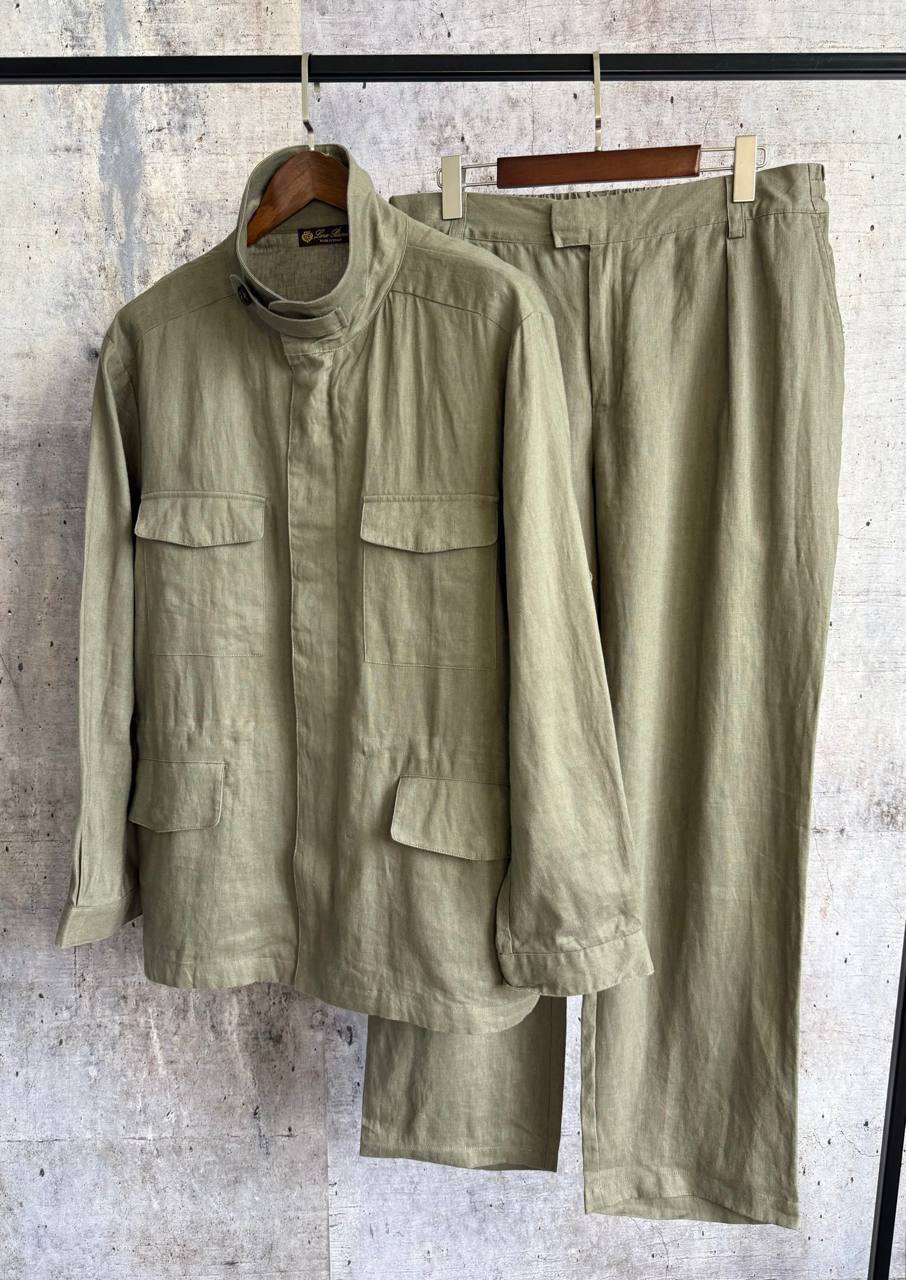 Этот мужской костюм от Loro Piana - воплощение элегантности и практичности. Выполненный в приглушенном оливковом цвете, он идеально подходит для создания стильного и современного образа.