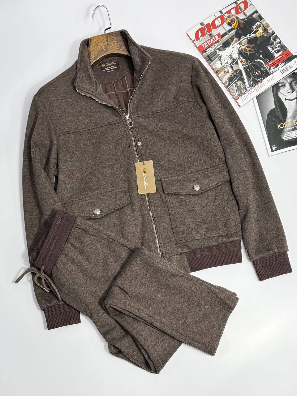 Мужской спортивный костюм Loro Piana LUX-124462 — стильный и комфортный вариант для повседневной носки. Костюм выполнен в коричневом цвете и характеризуется лаконичным дизайном.