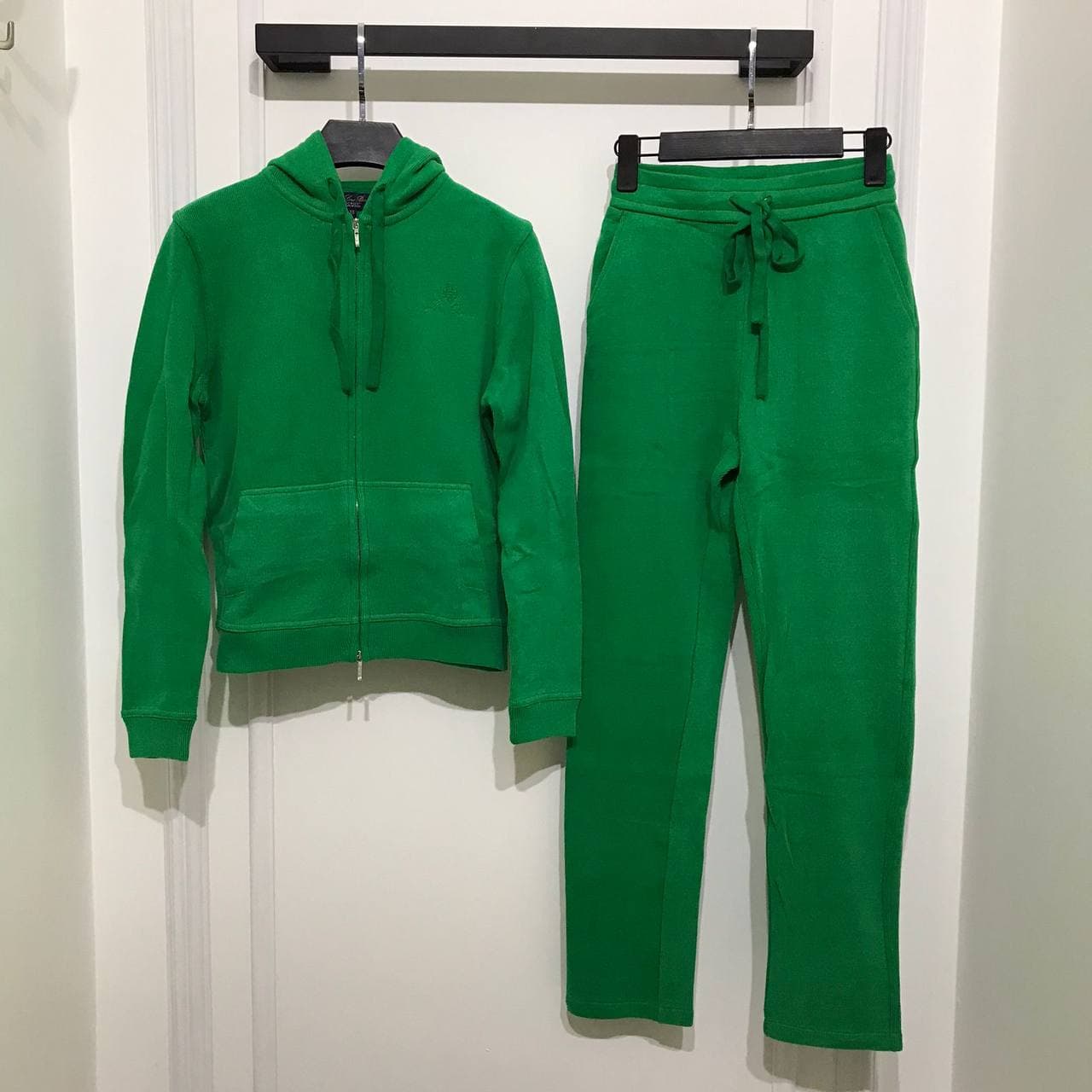 Этот спортивный костюм Loro Piana LUX-59632 – идеальный выбор для тех, кто ценит комфорт и стиль. Комплект выполнен в ярком зеленом цвете и включает худи на молнии с карманом-кенгуру и брюки с кулиской на поясе. Классический спортивный силуэт, дополненный минималистичным брендовым логотипом, делает этот костюм универсальным.
