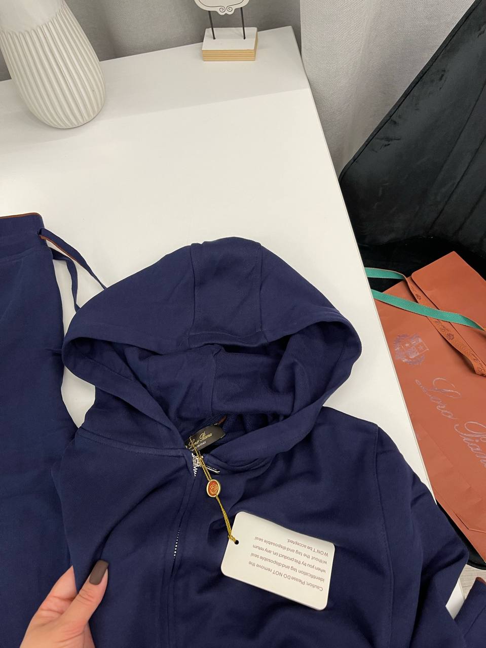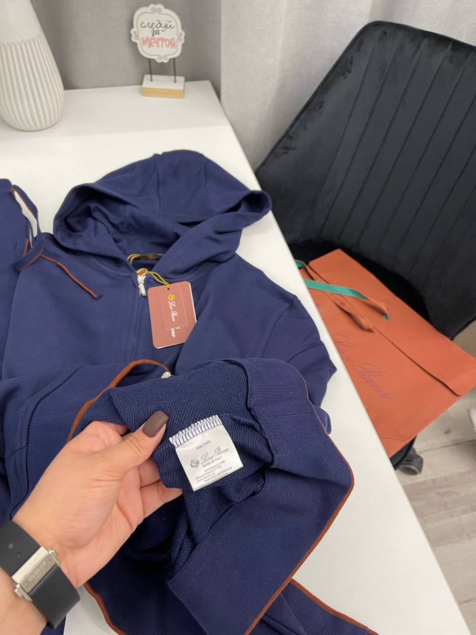 Костюм спортивный Loro Piana LUX-95692 – это воплощение элегантности и комфорта в повседневной одежде. Комплект, представленный на фото, выполнен в глубоком синем цвете, что делает его универсальным для различных образов. Текстура ткани мягкая и приятная на ощупь, идеален для создания расслабленного, но стильного образа.