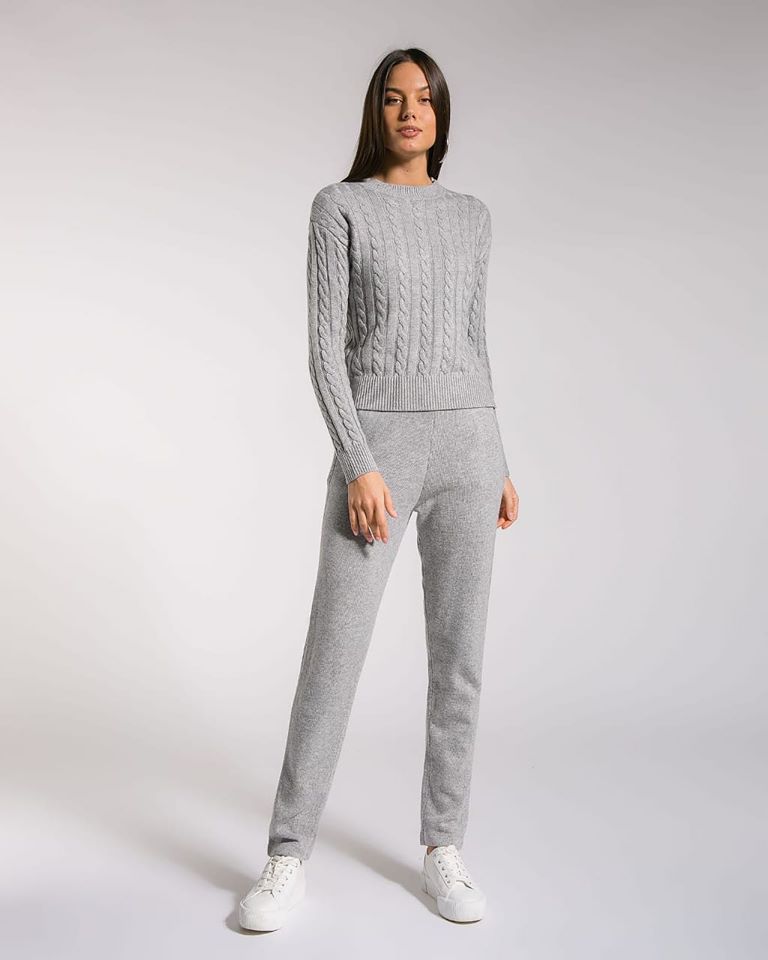 Спортивный костюм женский Loro Piana LUX-23634 представляет собой элегантный и комфортный комплект, выполненный в спортивном стиле. Модель идеально подойдет для создания расслабленных, но стильных образов, сочетая в себе качество и современный дизайн. Комплект состоит из укороченного джемпера с круглым вырезом и длинными рукавами, украшенного узором "косы", и прямых брюк.