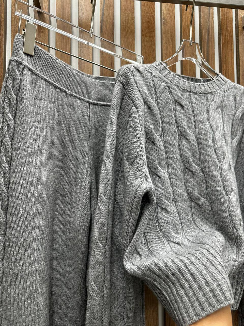 Костюм женский Loro Piana LUX-97742 – это воплощение элегантности и комфорта. Комплект состоит из вязаного свитера и юбки, выполненных в едином стиле и цвете. Серый оттенок костюма создает ощущение уюта и легкости, идеально подходящего для повседневной носки или более формальных мероприятий.