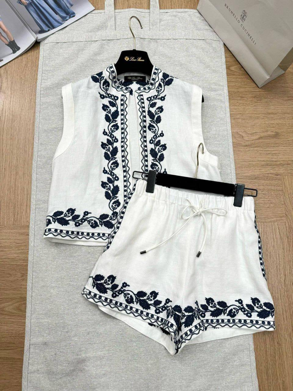 Костюм женский Loro Piana LUX-108168 - это элегантный ансамбль, который состоит из топа и шорт. Белый костюм украшен вышивкой в темно-синих тонах, что придает ему изысканный вид. Этот костюм подойдет для летнего отдыха или вечерних прогулок, сочетая в себе стиль и комфорт.