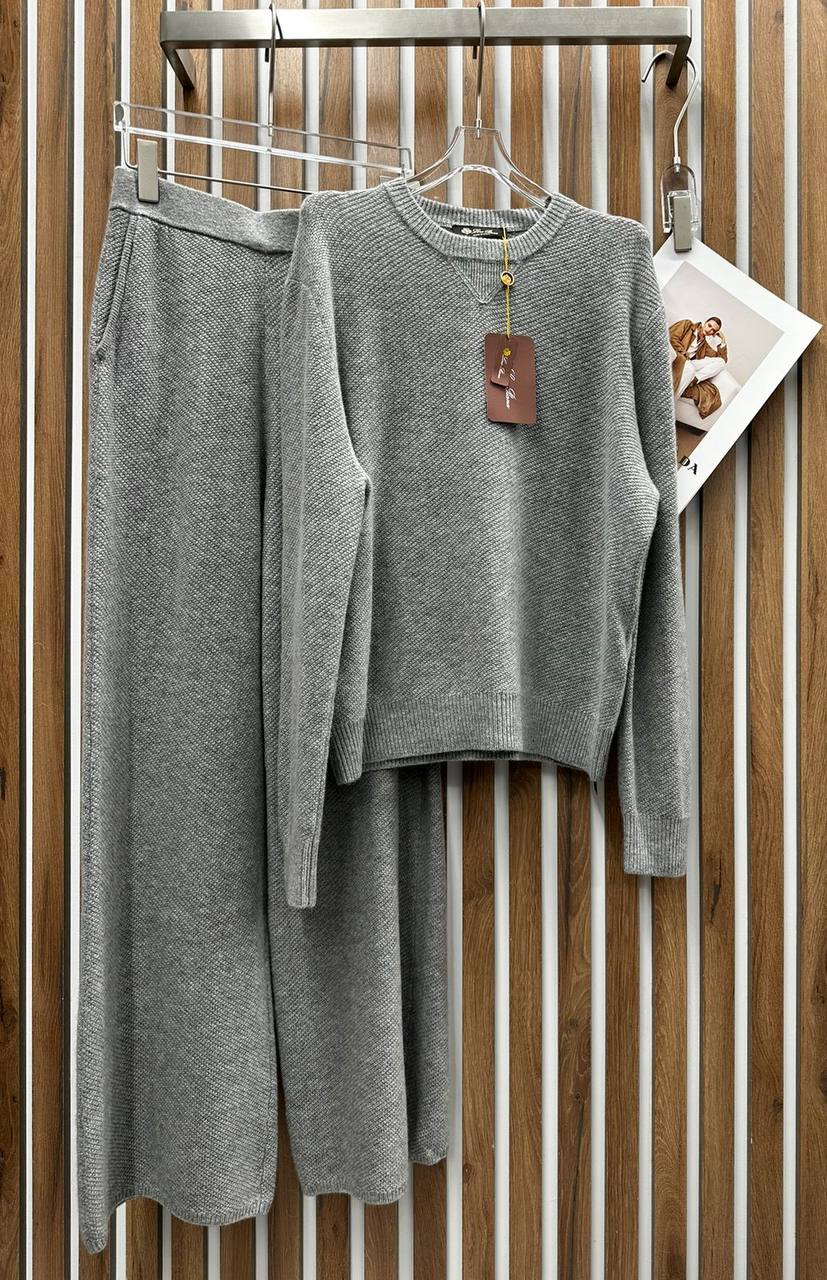 Костюм женский Loro Piana LUX-110656 – это стильный и комфортный комплект для создания элегантных образов. Костюм состоит из кофты с круглым вырезом и свободных брюк прямого кроя в сером цвете. Он имеет приятную на ощупь текстуру, отлично подходит для повседневной носки.