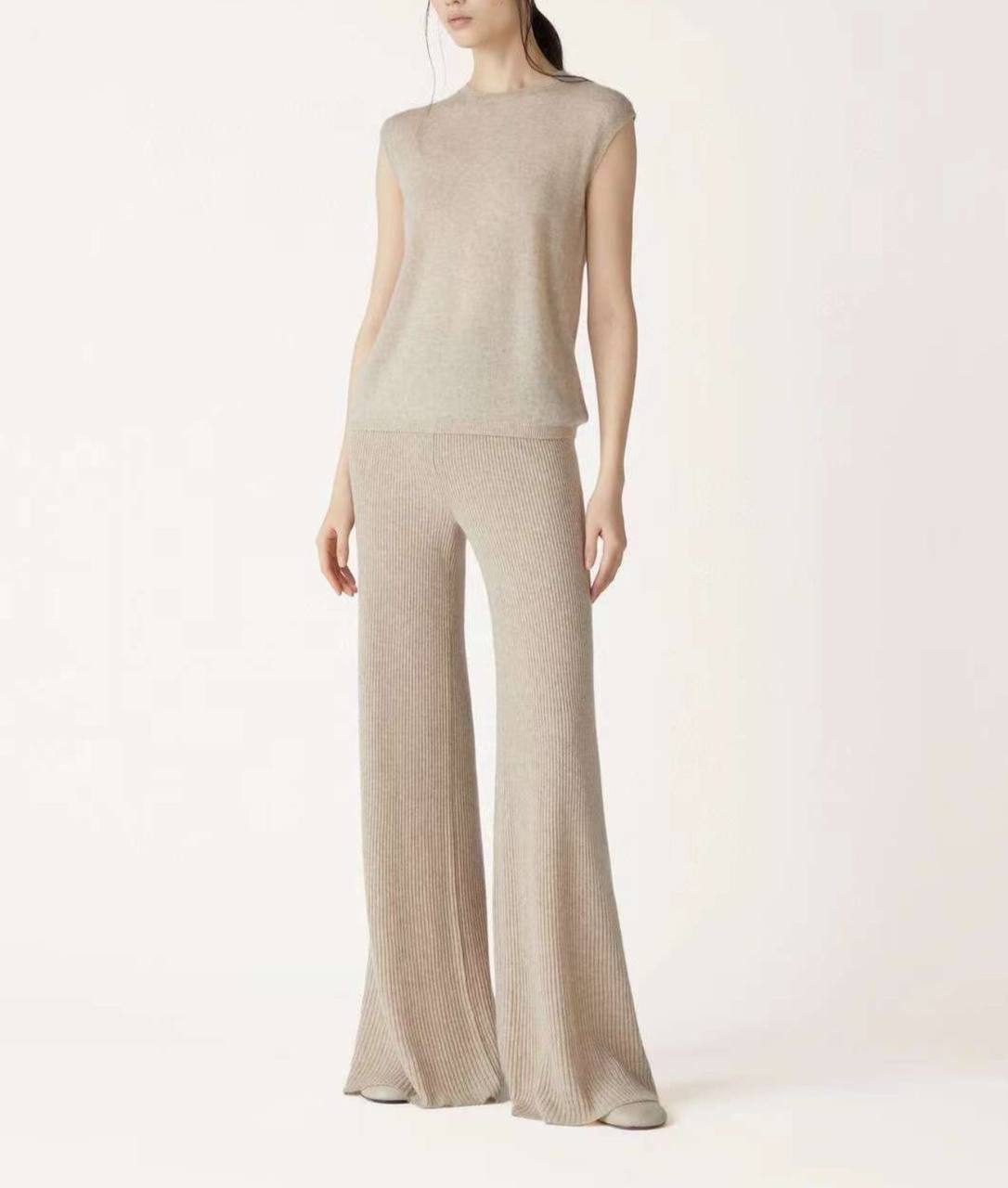 Костюм женский Loro Piana LUX-113545 — это элегантный ансамбль, состоящий из топа и брюк, выполненный в минималистичном стиле. Костюм обладает нейтральным бежевым оттенком, что делает его универсальным для создания различных образов. Идеален для повседневной носки, а также может служить основой для более нарядных комплектов.
