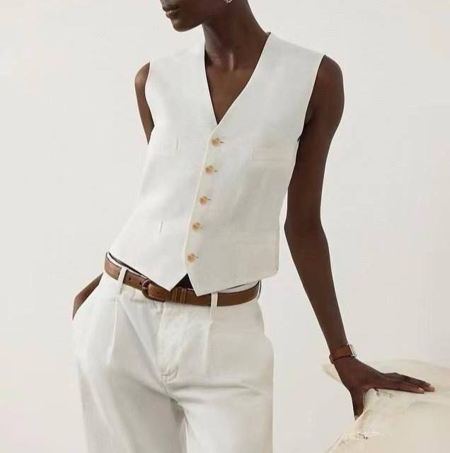 Костюм женский Loro Piana LUX-119132 — это стильный женский костюм, состоящий из жилета и брюк белого цвета. Жилет с V-образным вырезом и брюки прямого кроя создают элегантный и современный образ. Этот костюм подходит для различных мероприятий, от деловых встреч до повседневных прогулок.
