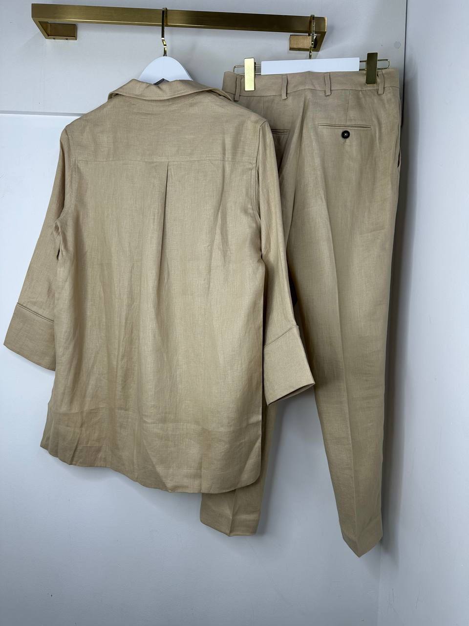 Костюм женский Loro Piana LUX-119706, представленный на изображении, — это элегантный комплект, выполненный в повседневном стиле. Комплект состоит из рубашки с V-образным вырезом и классических брюк, выполненных в едином песочном цвете. Этот костюм — отличный выбор для создания стильного образа, который подходит как для работы, так и для неформальных встреч.