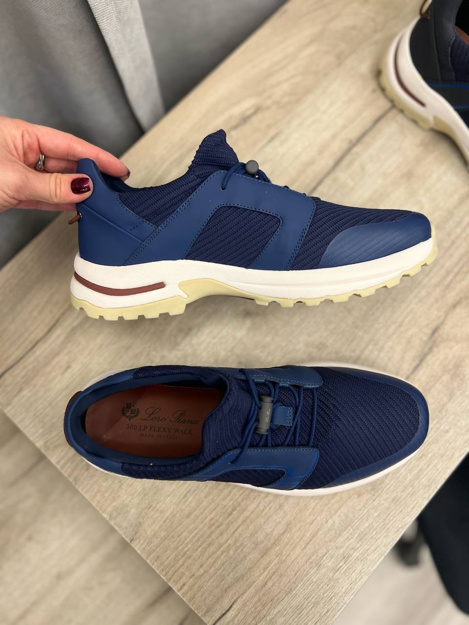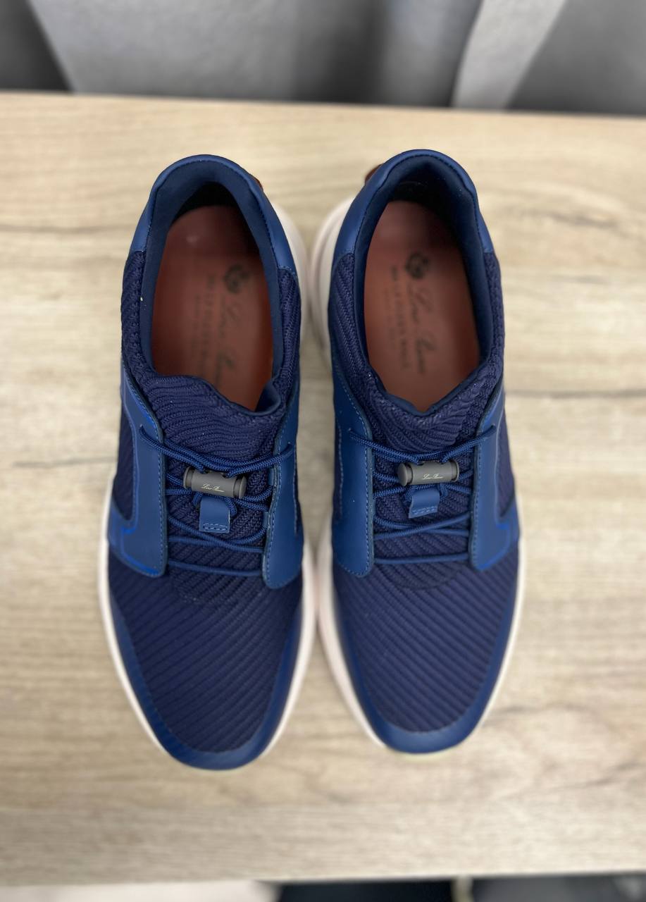 Кроссовки Loro Piana LUX-102224 — это стильная обувь в спортивном стиле темно-синего цвета. Кроссовки имеют текстурированный верх и белую подошву с контрастными элементами. Эта модель идеально подходит для повседневной носки, обеспечивая комфорт и современный вид.