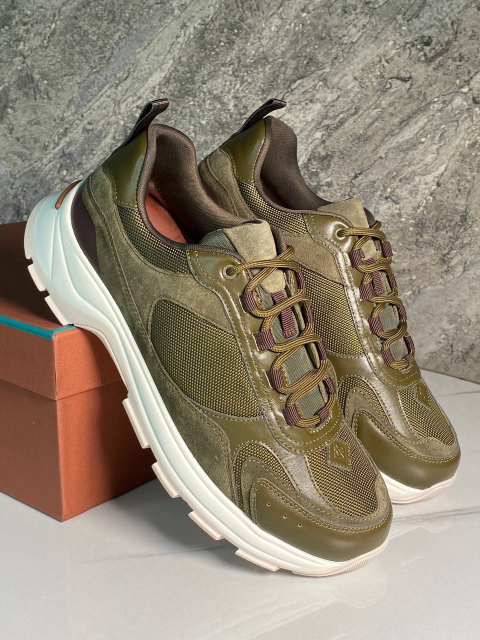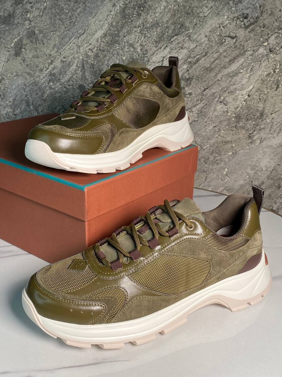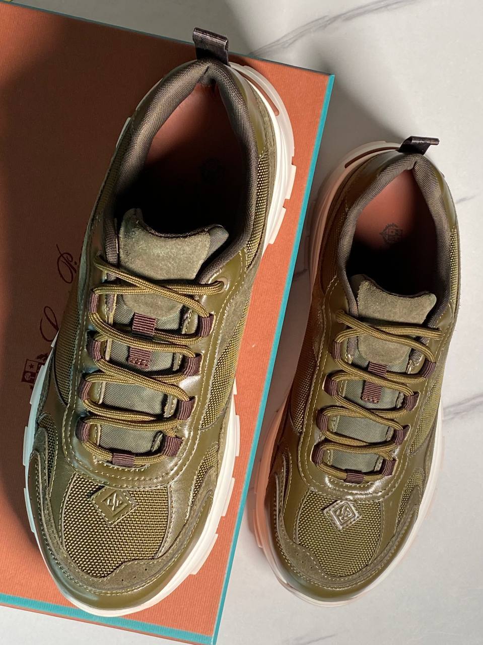 Кроссовки Loro Piana LUX-115237 — это стильная обувь в спортивном стиле. Модель выполнена в оливковом цвете с элементами коричневого и белого. Кроссовки предназначены для повседневной носки, идеально сочетаются с различной одеждой.