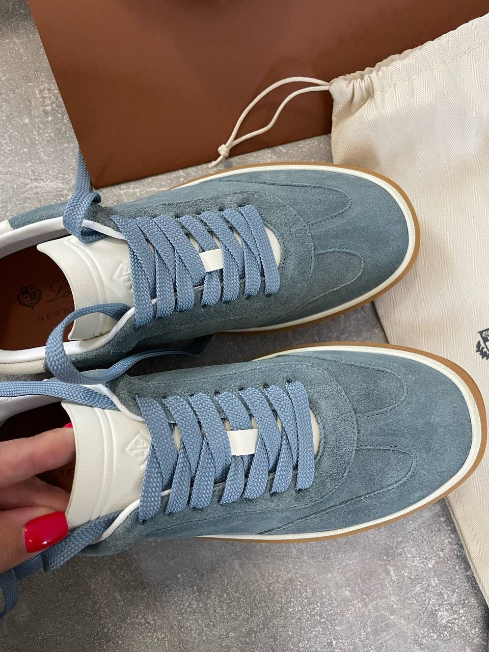 Кроссовки Loro Piana LUX-110572 — это стильная и элегантная модель, выполненная в классическом дизайне. Цвет кроссовок — голубой, а подошва – коричневая. Отлично подойдут для повседневной носки, сочетая в себе комфорт и узнаваемый стиль Loro Piana.