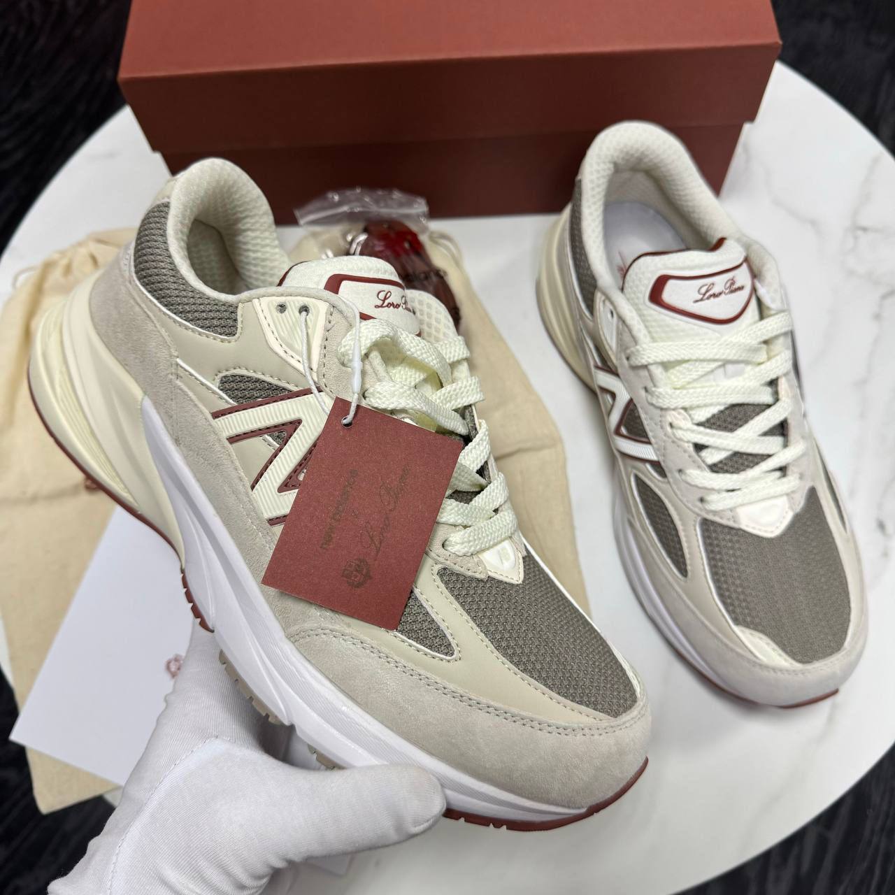 Кроссовки Loro Piana LUX-111867 — это сочетание стиля и комфорта, выполненные в сдержанных тонах. Кроссовки бежевого цвета с серыми вставками и красными акцентами идеально подойдут для повседневной носки, придавая образу элегантность.