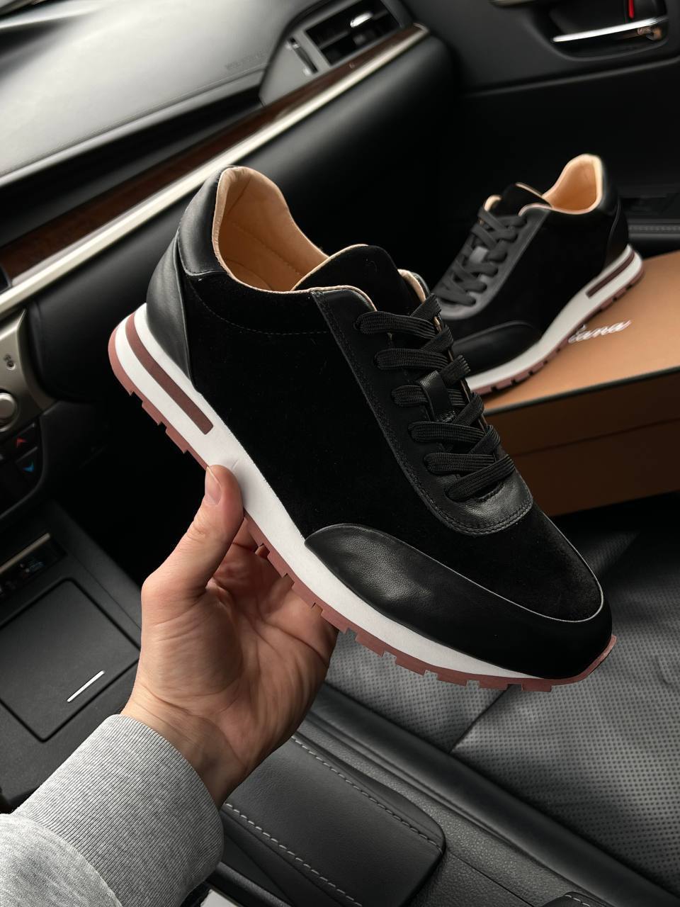 Кроссовки Loro Piana LUX-71034 — это стильная обувь для повседневной носки, выполненная в классическом стиле. Черный цвет, контрастирующий с белой подошвой и элементами коричневого цвета, придает им элегантный вид. Кроссовки отличаются универсальностью, легко сочетаясь с различными стилями одежды.