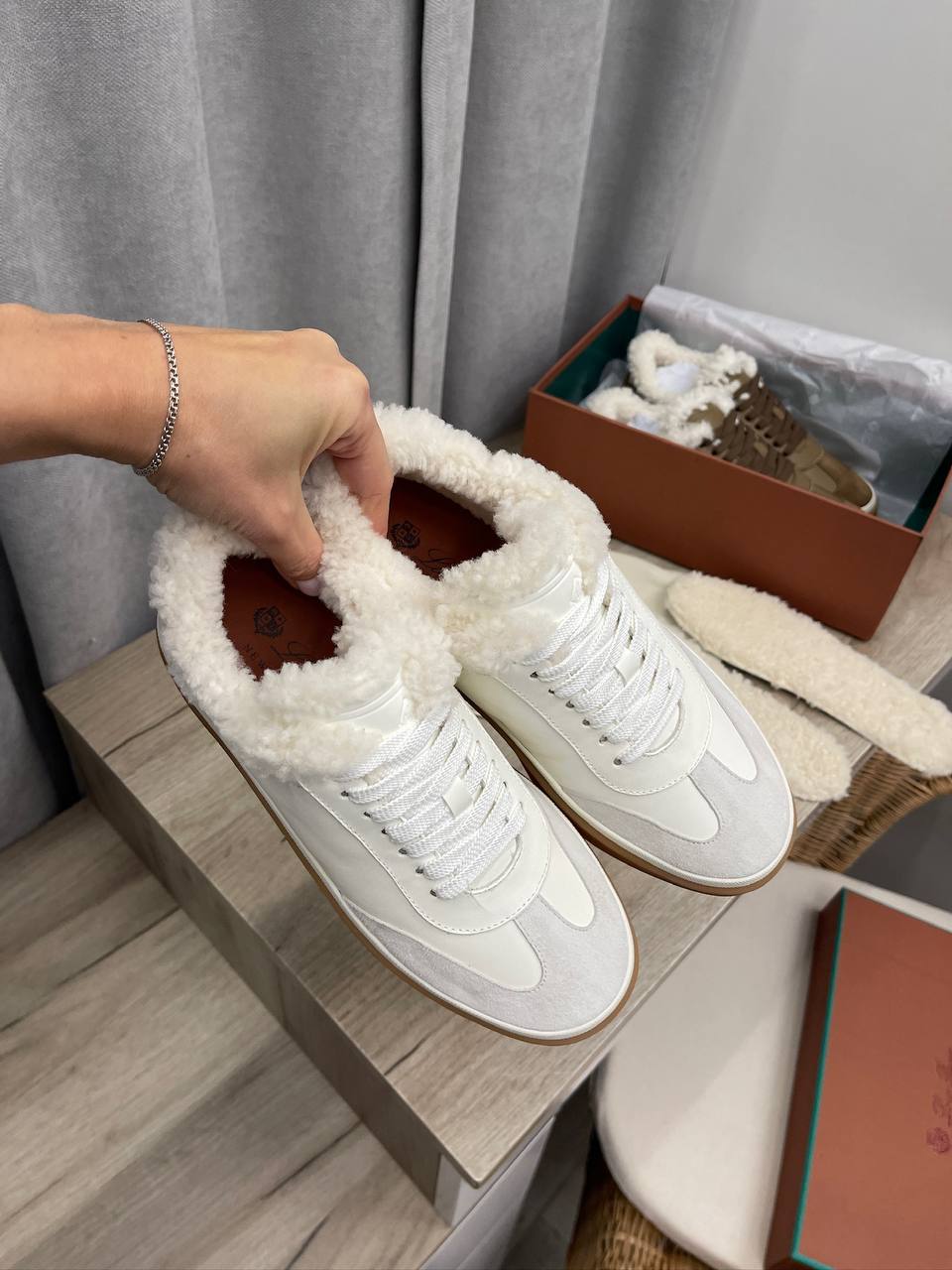 Кроссовки Loro Piana LUX-112390 — это стильная модель, выполненная в белом цвете с меховой отделкой. Кроссовки идеально подойдут для повседневной носки в холодное время года. Сочетание комфорта и элегантности делает их отличным выбором для тех, кто ценит качество и стиль.