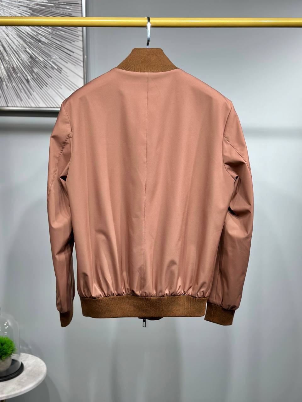 Куртка Loro Piana LUX-87575 – это стильная куртка, выполненная в элегантном стиле. Она имеет однотонный розовый цвет с коричневыми деталями на воротнике, манжетах и внизу изделия. Куртка застегивается на молнию и идеально подходит для создания повседневных образов.