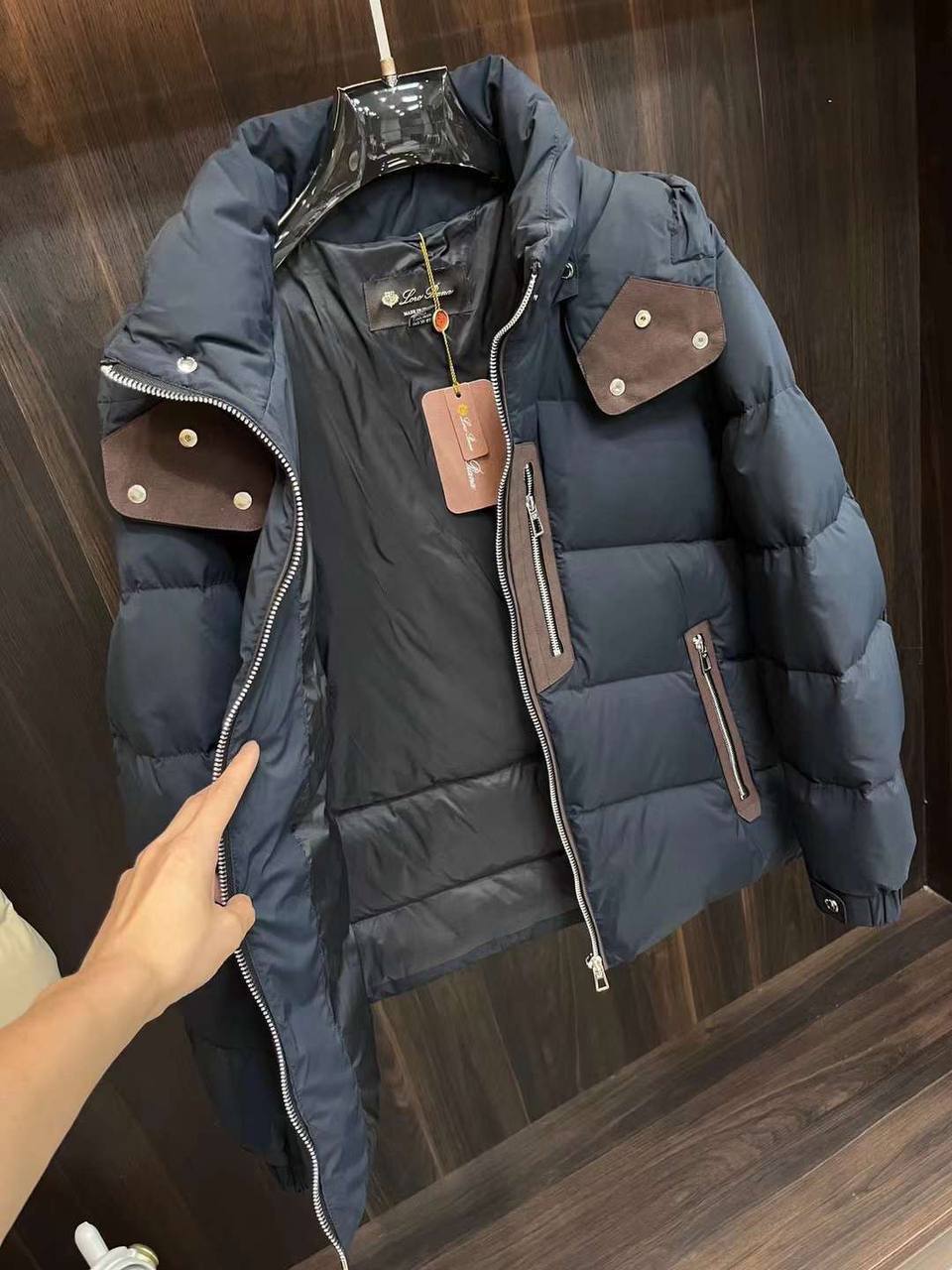 Куртка Loro Piana LUX-112730 — это стильная зимняя куртка темно-синего цвета с удобным капюшоном. Отличается стеганым дизайном и контрастными деталями. Подходит для повседневного ношения в холодную погоду.