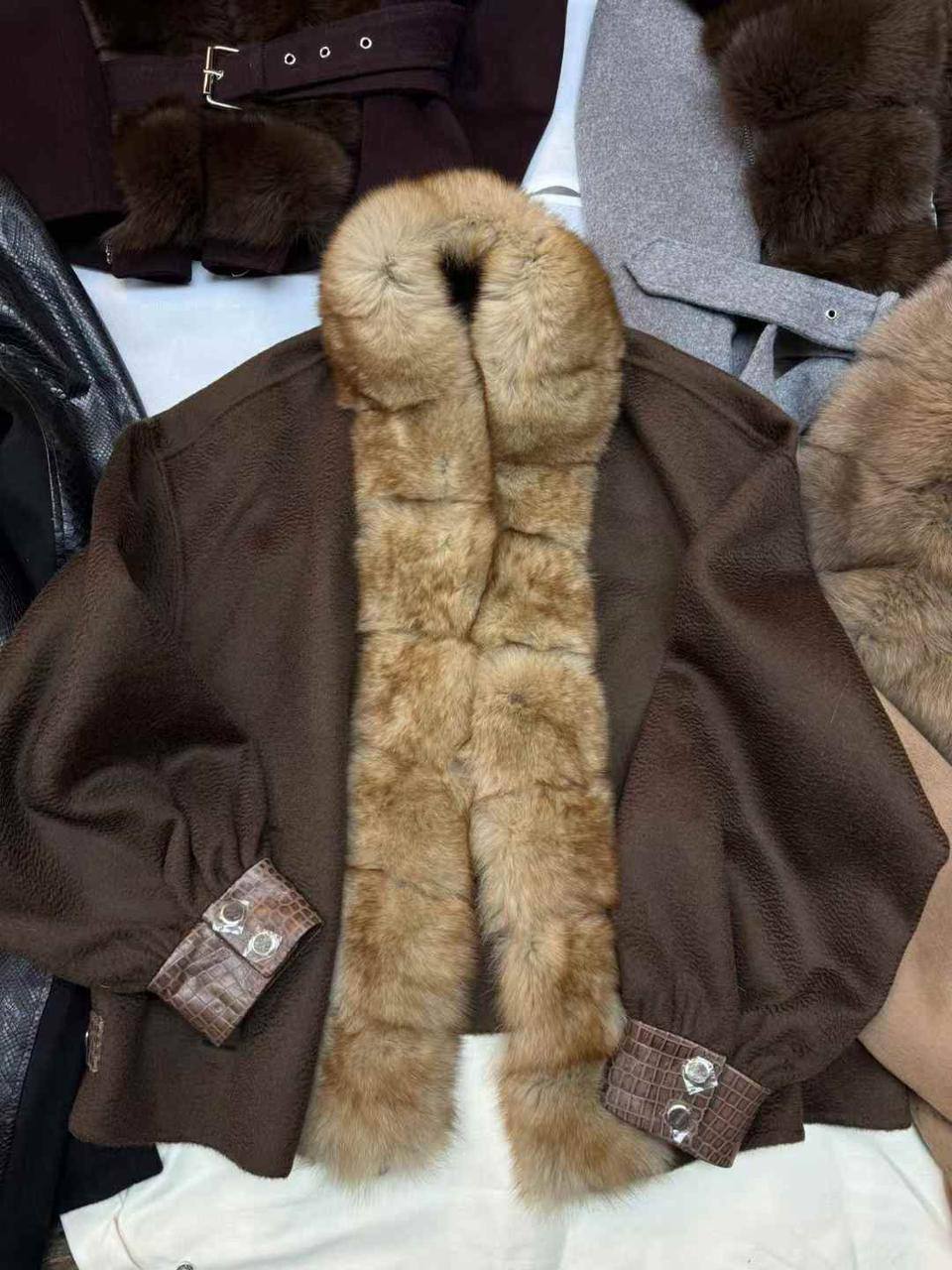 Куртка Loro Piana LUX-114747 - это изысканное сочетание комфорта и элегантности. Куртка выполнена в коричневом цвете с акцентом на пышном меховом воротнике. Прекрасно подойдет для создания стильных образов в холодное время года.