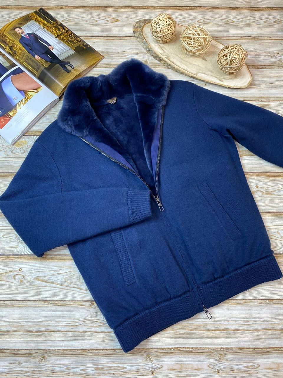 Мужская куртка Loro Piana LUX-81535 — это стильная и элегантная модель, выполненная в глубоком синем цвете. Куртка имеет современный дизайн с воротником с меховой отделкой, обеспечивая комфорт и тепло в холодное время года. Идеально подходит для создания повседневных образов.