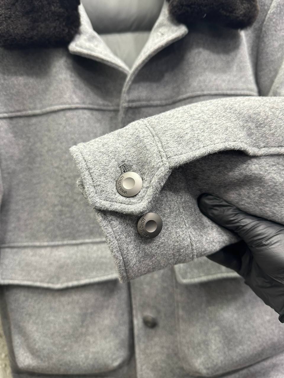 Куртка мужская Loro Piana LUX-83137 - это стильное и функциональное изделие для современного мужчины. Куртка выполнена в сером цвете, что делает ее универсальной для различных образов. Меховой воротник добавляет элегантности и тепла, делая куртку подходящей для холодной погоды.