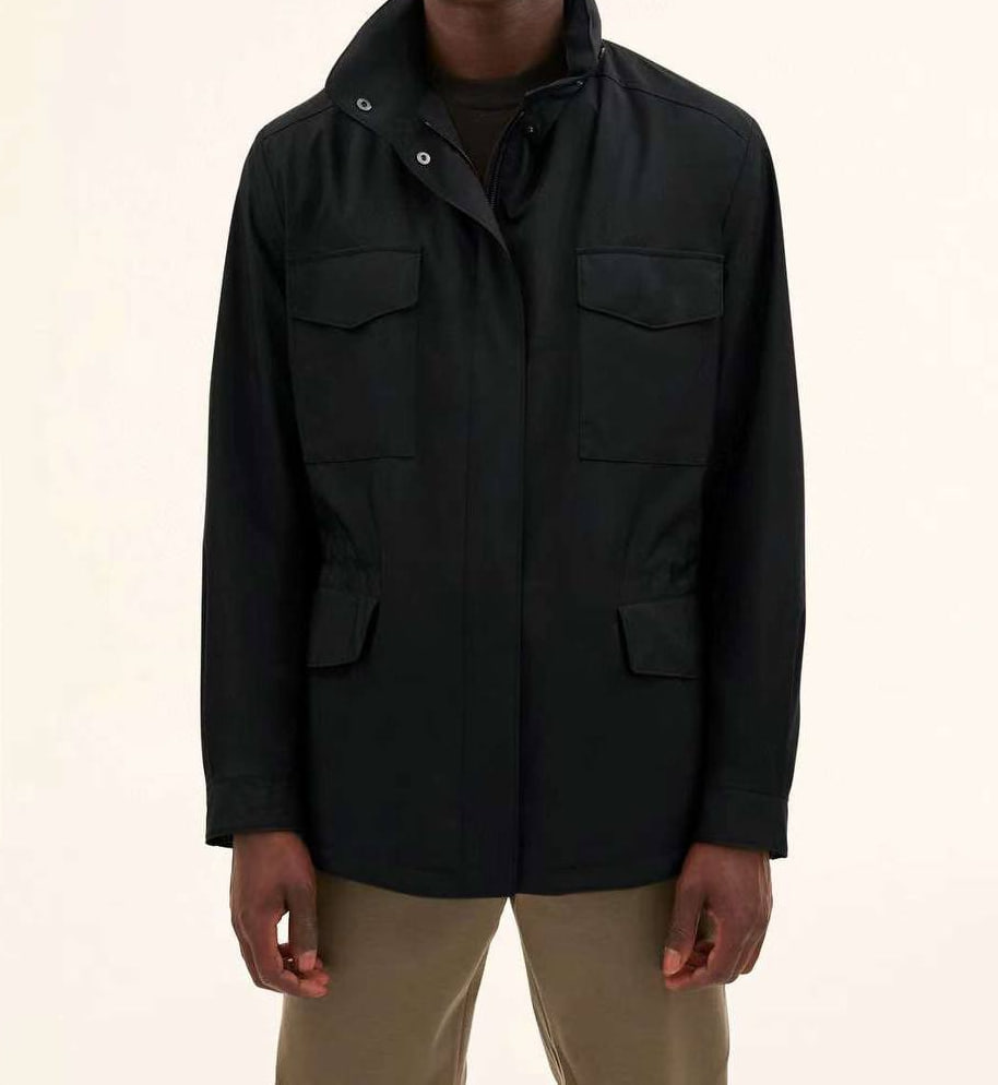 Куртка мужская Loro Piana LUX-95600 выполнена в классическом стиле. Она представлена в черном цвете, имеет гладкую текстуру и предназначена для повседневной носки в демисезонный период.