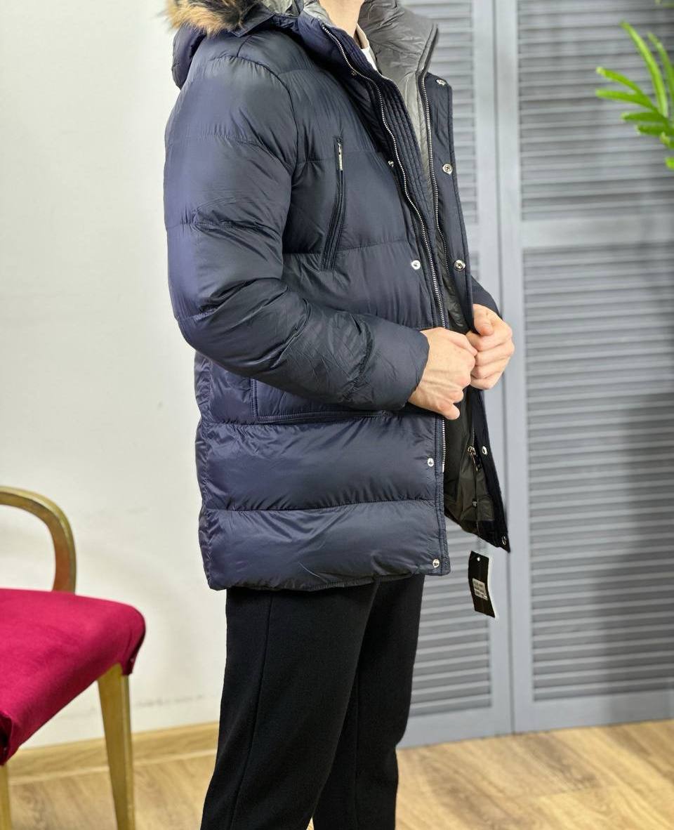 Куртка мужская Loro Piana LUX-97617, представленная на изображении, — это стильная и функциональная верхняя одежда. Чёрный цвет и стёганый дизайн придают куртке элегантный вид, а меховая опушка на капюшоне добавляет нотку роскоши. Идеально подходит для повседневной носки в холодное время года.