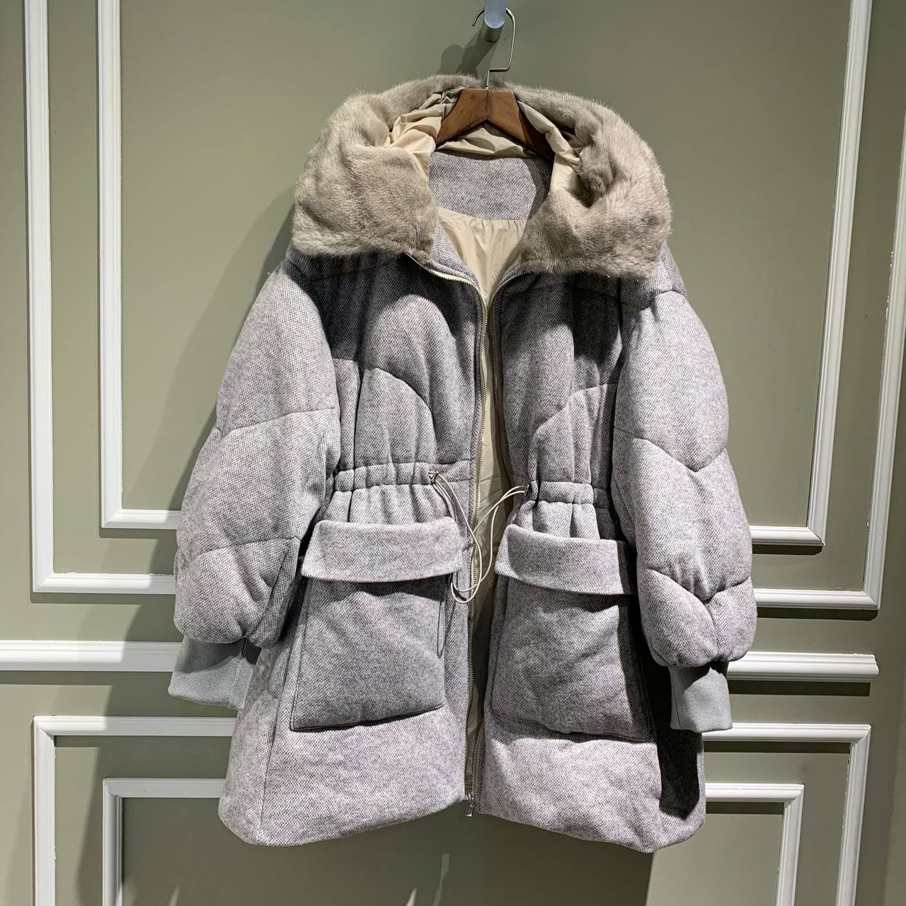 Куртка женская Loro Piana LUX-76793 – воплощение стиля и комфорта. Куртка выполнена в сером цвете, что делает ее универсальным вариантом для любого гардероба. Теплая куртка с меховым воротником идеально подходит для холодной погоды.