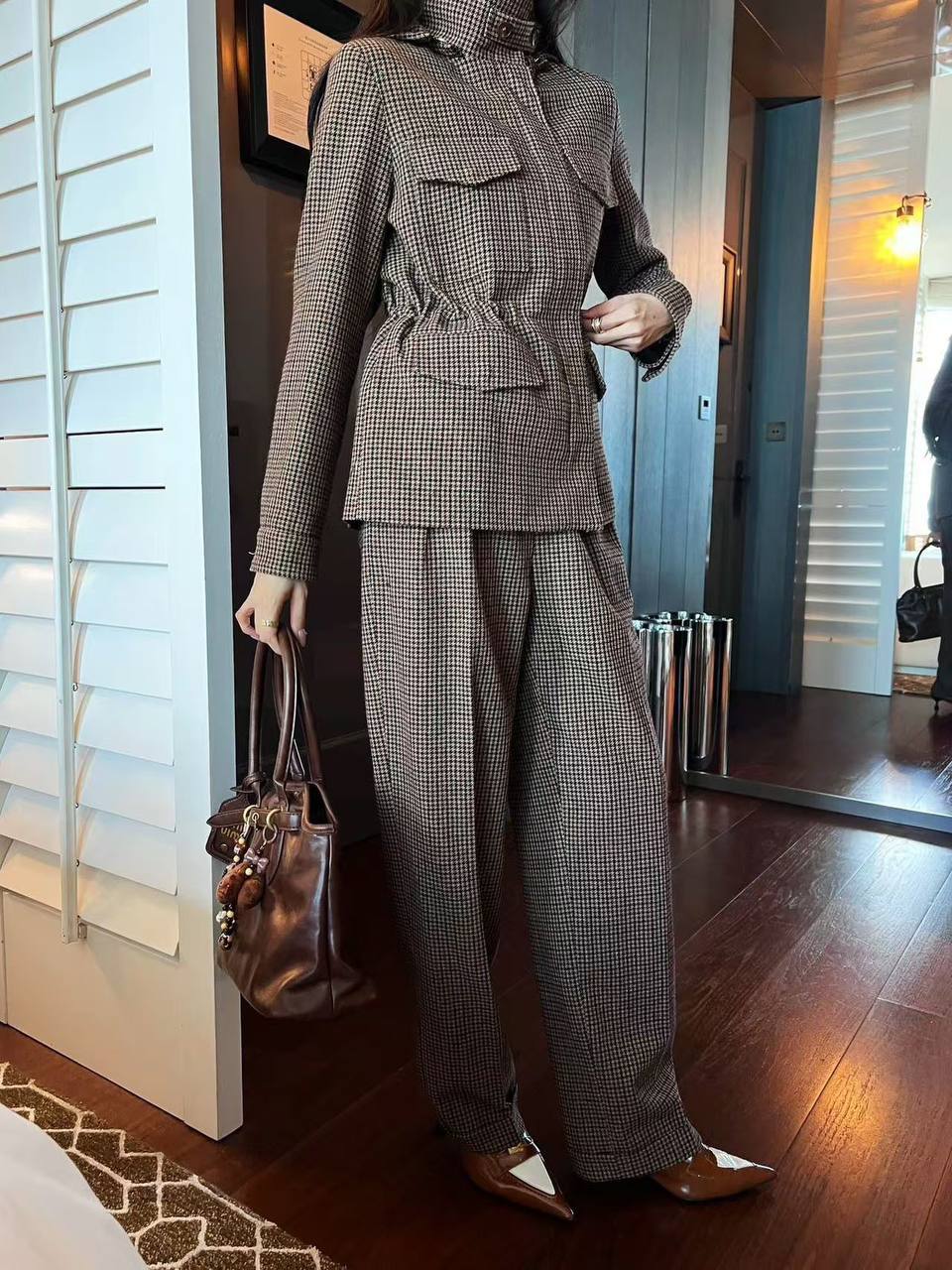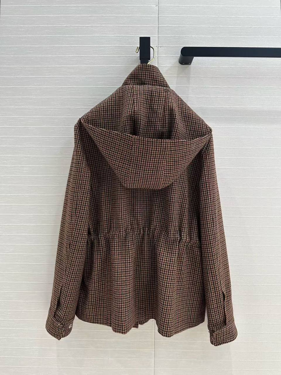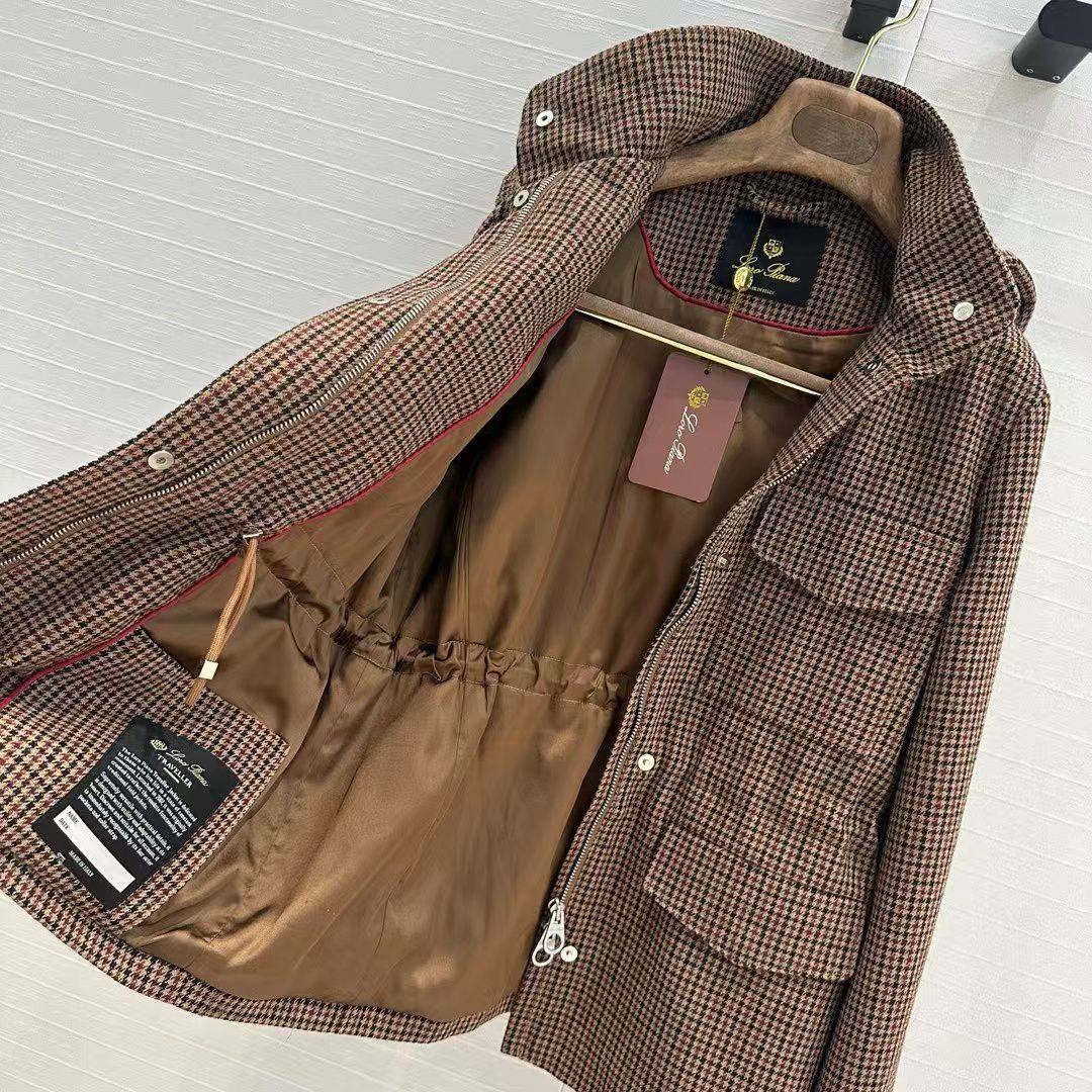 Куртка женская Loro Piana LUX-112515 — это элегантная куртка, выполненная в классическом стиле. Куртка представлена в коричневых тонах с геометрическим узором. Она идеально подходит для создания стильных и комфортных образов в прохладную погоду.