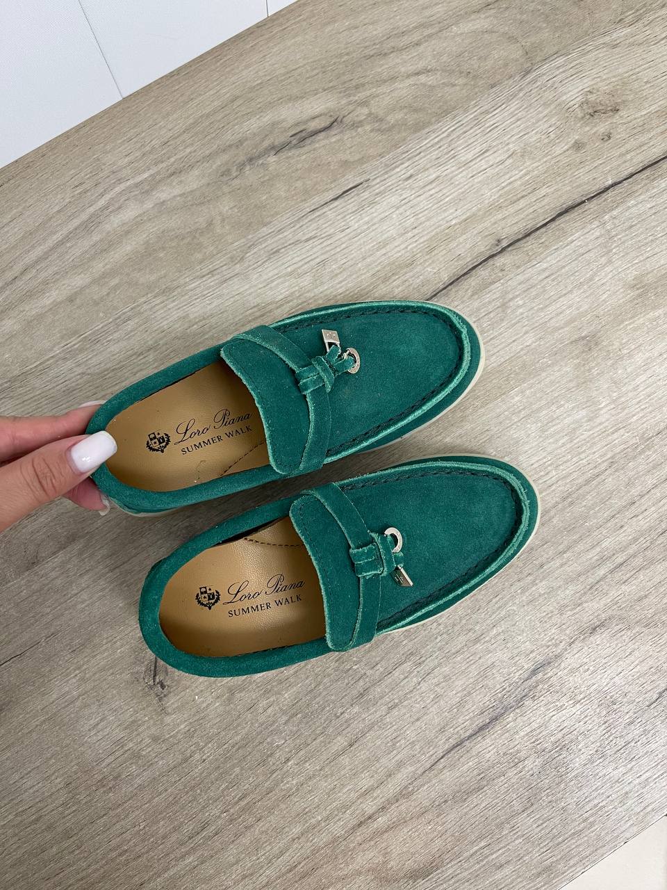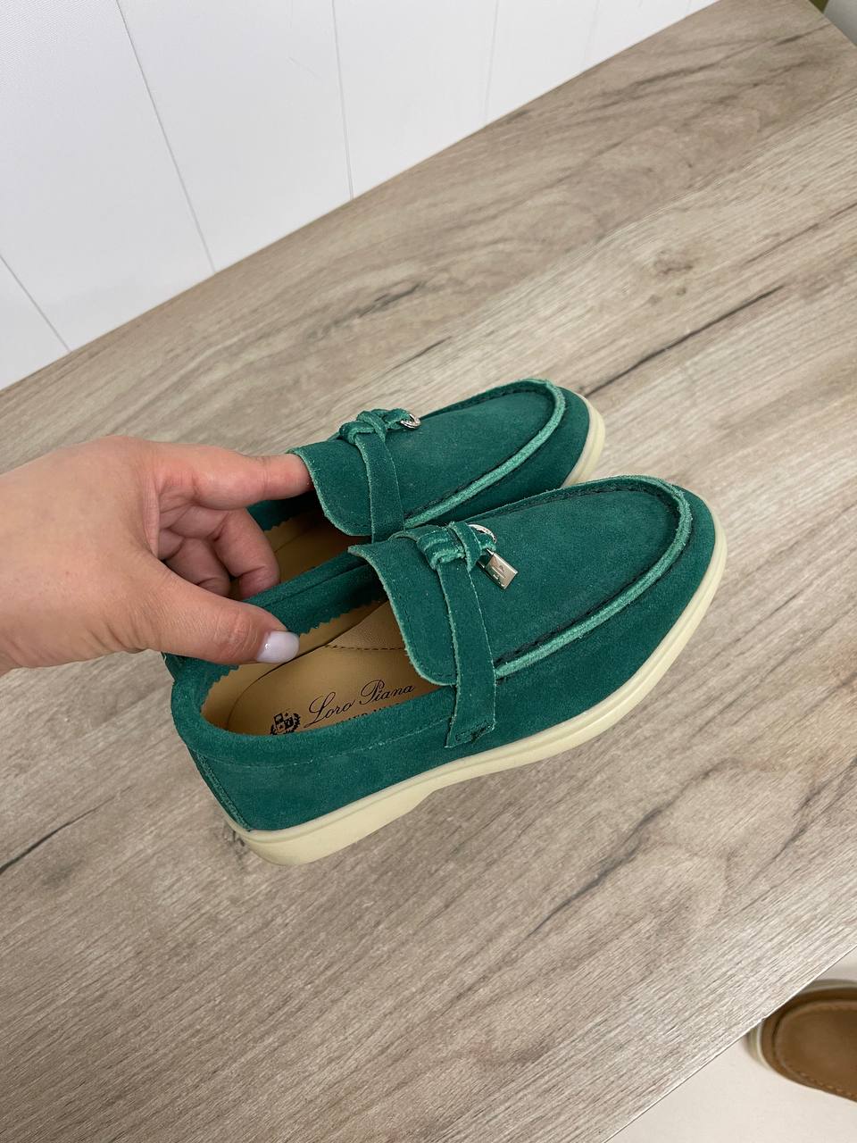 Лоферы Loro Piana LUX-90373 — это стильная обувь в классическом стиле. Модель выполнена в насыщенном зеленом цвете. Лоферы отличаются элегантным дизайном, который подойдет для различных образов.