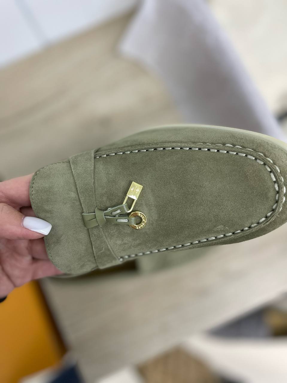 Лоферы Loro Piana LUX-87727 - это стильная обувь для теплой погоды. Модель выполнена в нежном зеленом цвете, с мягкой текстурой. Лоферы подойдут для создания повседневных образов, сочетая в себе элегантность и комфорт.