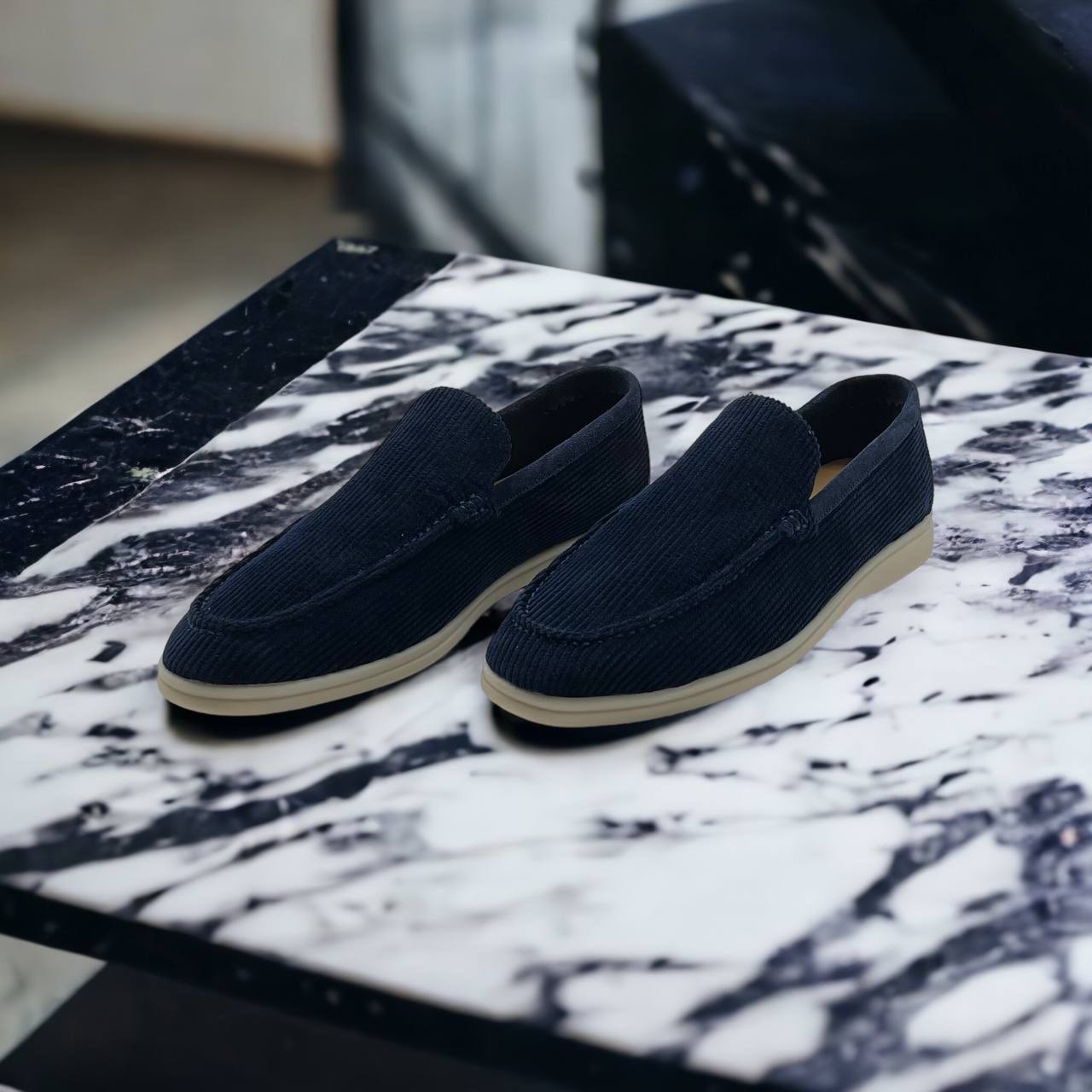 Лоферы вельветовые Loro Piana LUX-87132 - это элегантная обувь в классическом стиле. Темно-синий вельвет придает лоферам изысканный вид, а нейтральный цвет подошвы добавляет контрастности. Лоферы идеально подойдут для создания стильных повседневных и более формальных образов.