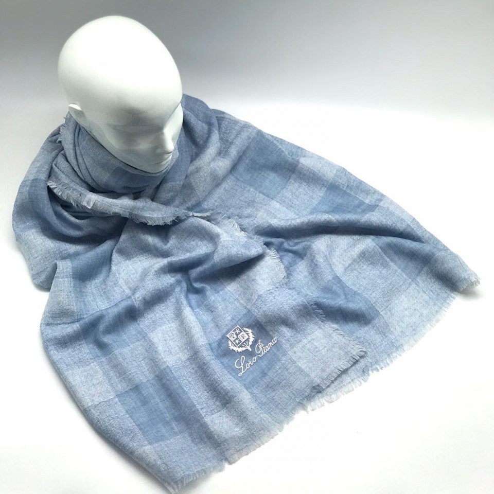 Палантин Loro Piana LUX-21970 — это элегантный аксессуар, выполненный в классическом стиле. Нежный голубой цвет и клетчатый узор делают его универсальным дополнением к различным образам, от повседневных до более формальных. Вышитый логотип бренда подчеркивает эксклюзивность изделия.