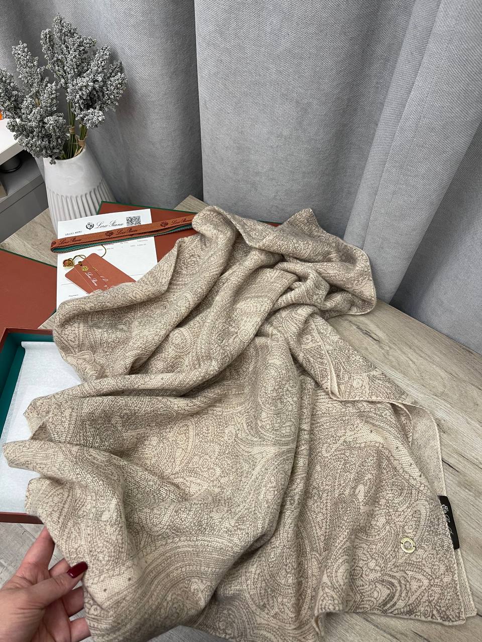 Палантин Loro Piana LUX-114358 представляет собой изысканный аксессуар, выполненный в классическом стиле. Палантин выполнен в мягких бежевых тонах с узором пейсли, который придает ему элегантность и изысканность. Он идеально подходит для дополнения различных образов, от повседневных до вечерних.