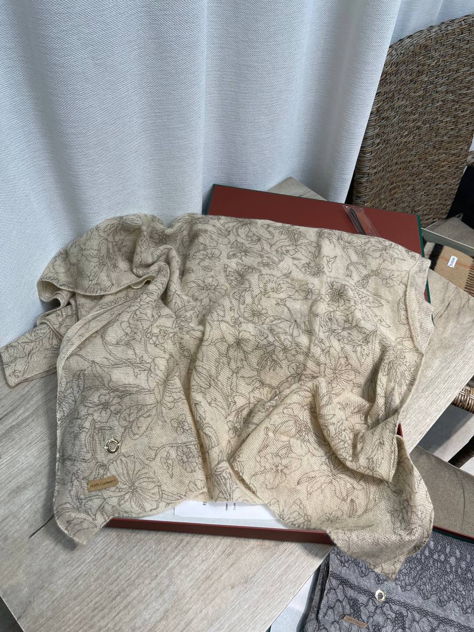 Палантин Loro Piana LUX-130146 - это элегантный аксессуар, который добавит изысканности любому образу. Он выполнен в нежных тонах с изящным цветочным узором.