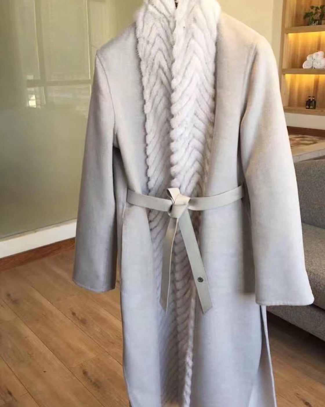 Пальто Loro Piana LUX-35705 представляет собой элегантную модель, выполненную в стиле классического пальто. Оригинальный дизайн дополнен отделкой из меха, придающей изделию роскошный вид. Пояс подчеркивает талию, создавая женственный силуэт.