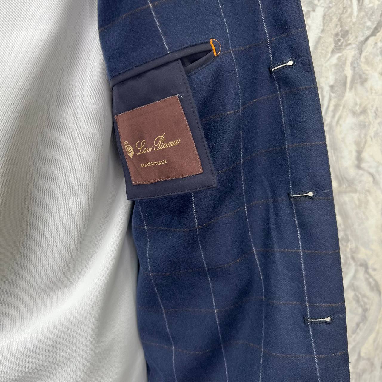 Плащ Loro Piana LUX-85552 — это элегантное пальто классического кроя. Темно-синий цвет и гладкая текстура создают универсальный и стильный образ. Этот плащ идеально подходит для повседневной носки и деловых встреч.
