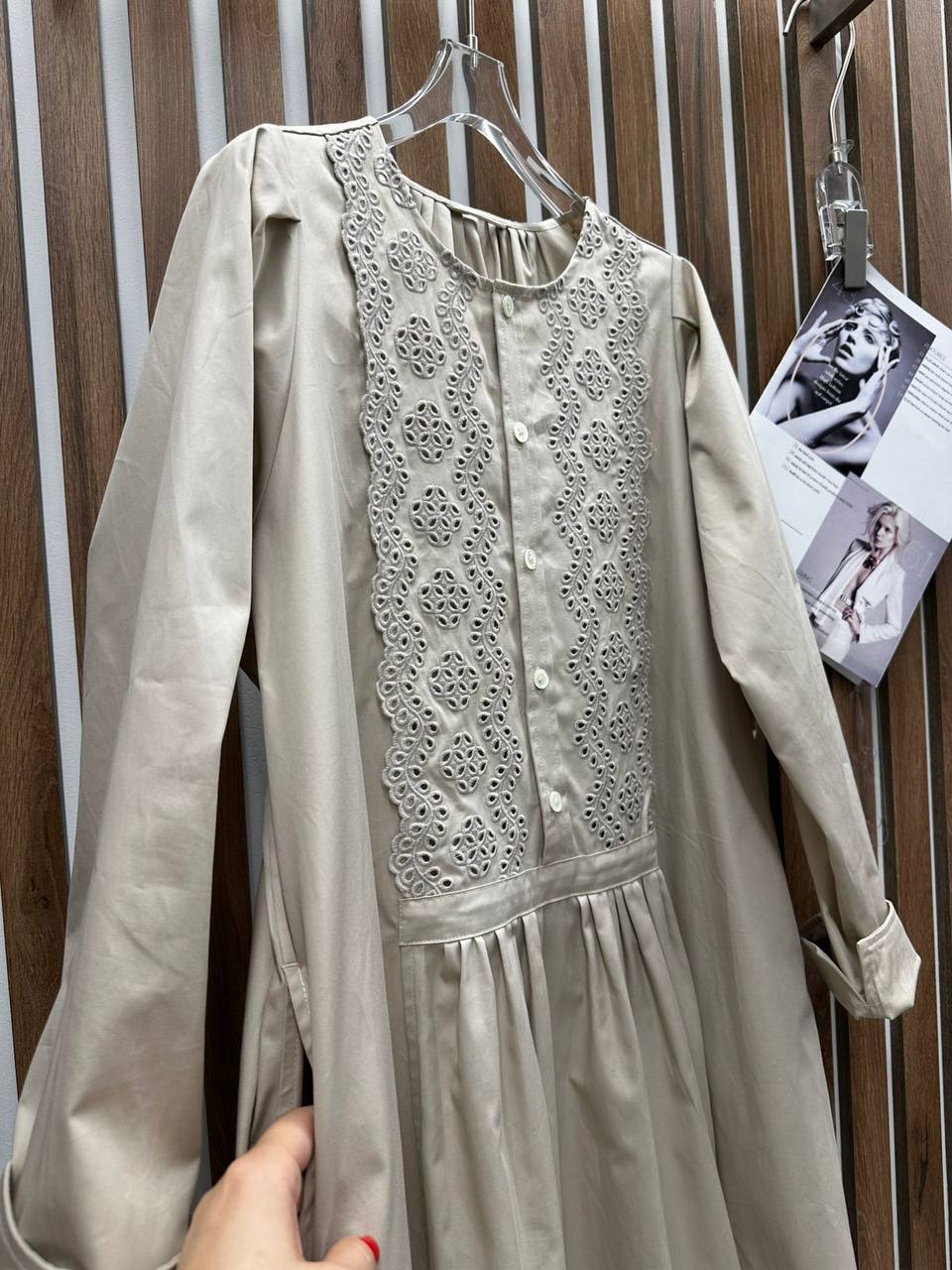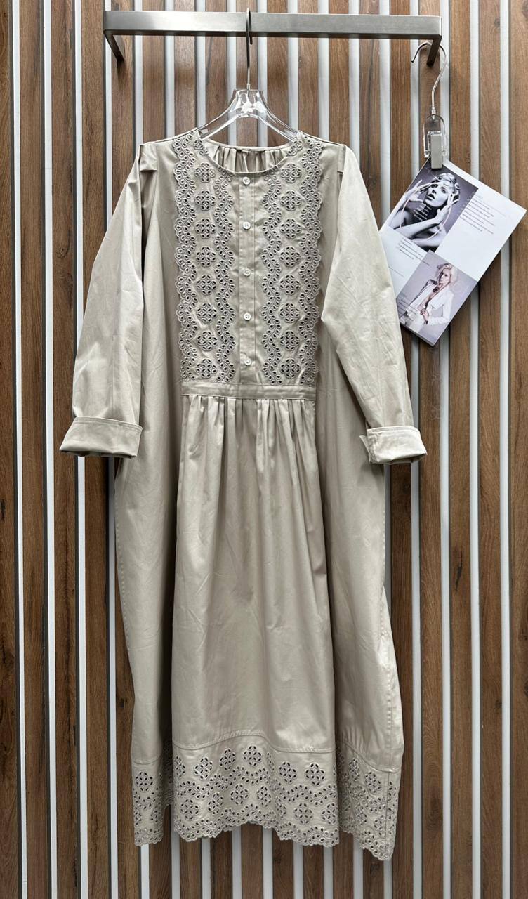 Платье Loro Piana LUX-121919 - элегантное и утонченное, выполнено в свободном крое и нейтральном оттенке. Отличается оригинальным дизайном с перфорированными деталями.