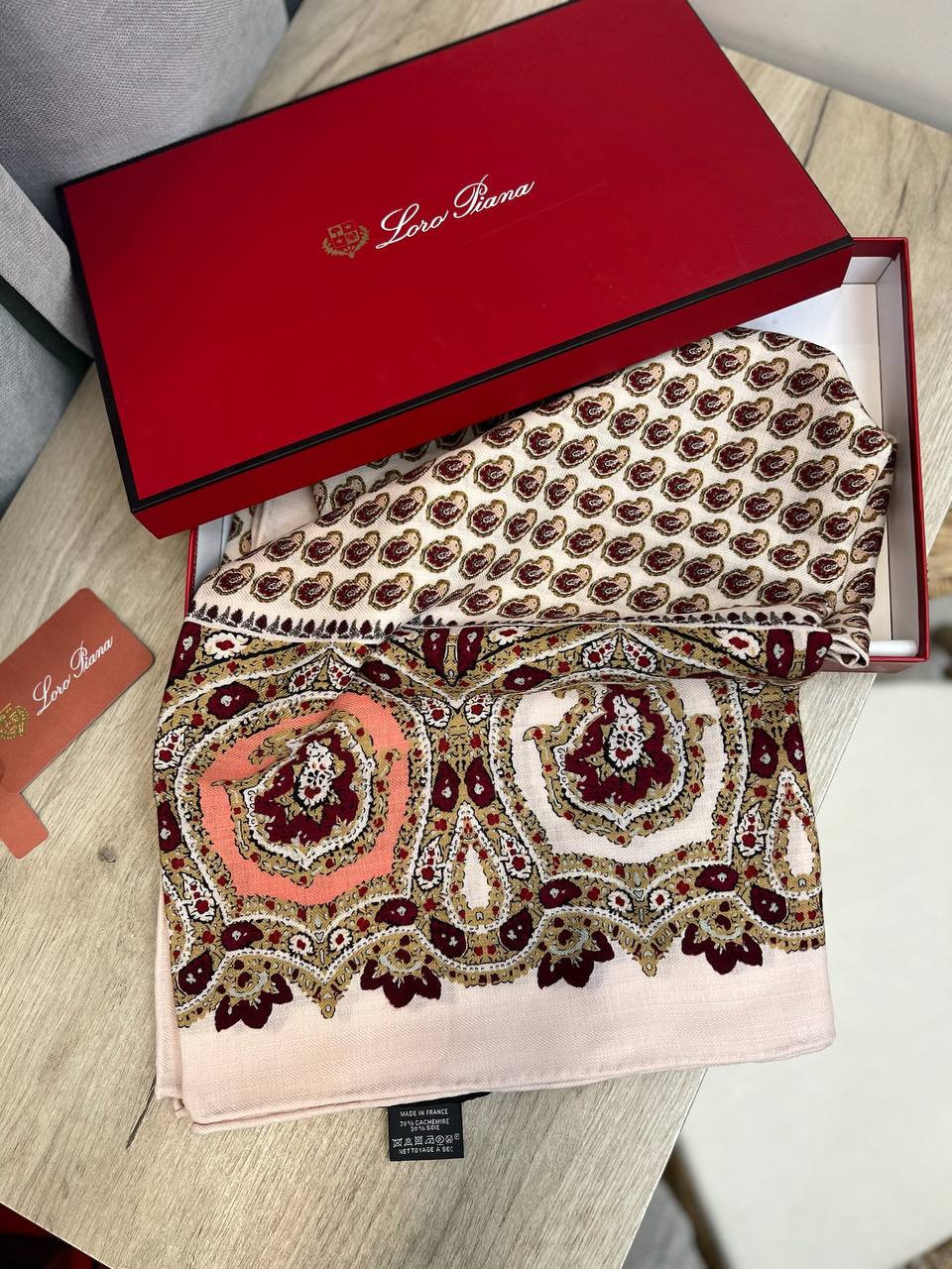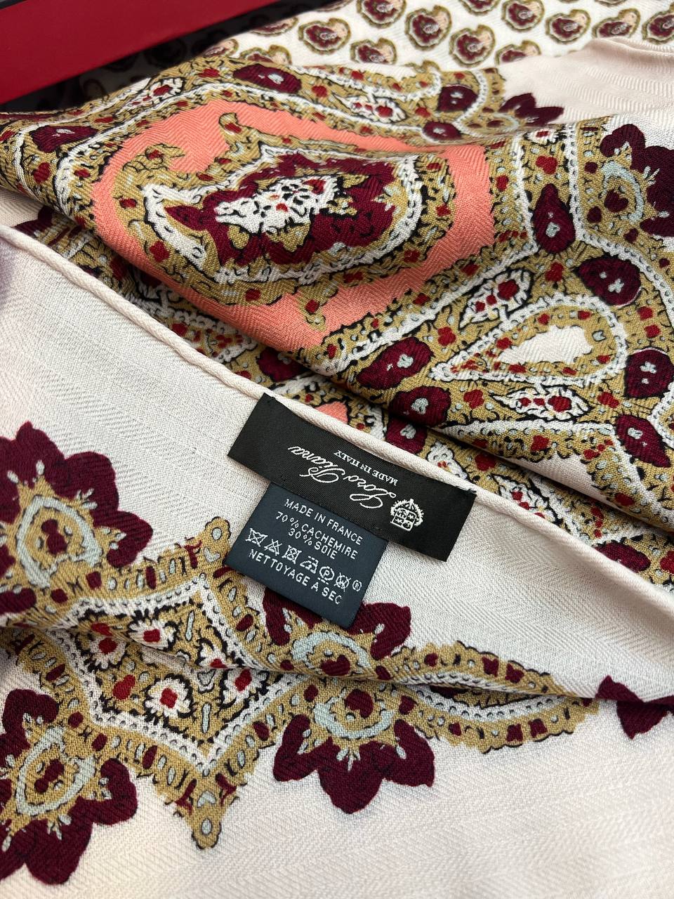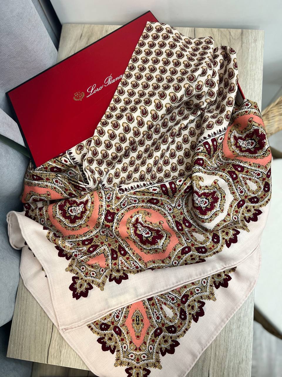 Платок Loro Piana LUX-99444 - это изысканный аксессуар, который подчеркнёт ваш безупречный вкус. Платок выполнен в нежных пастельных тонах с узором пейсли. Он идеально подойдет для создания элегантных образов, добавляя нотку роскоши и изысканности.