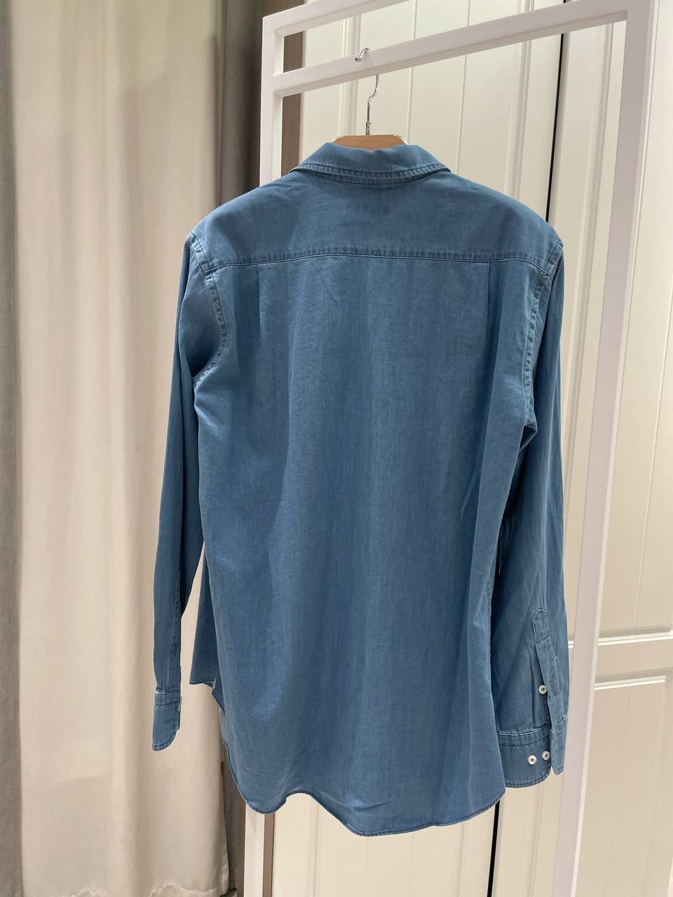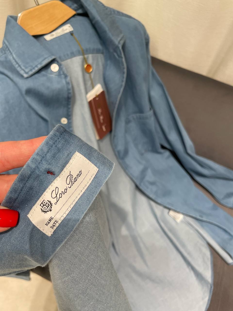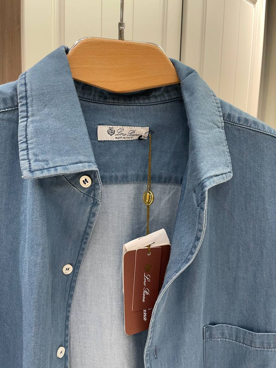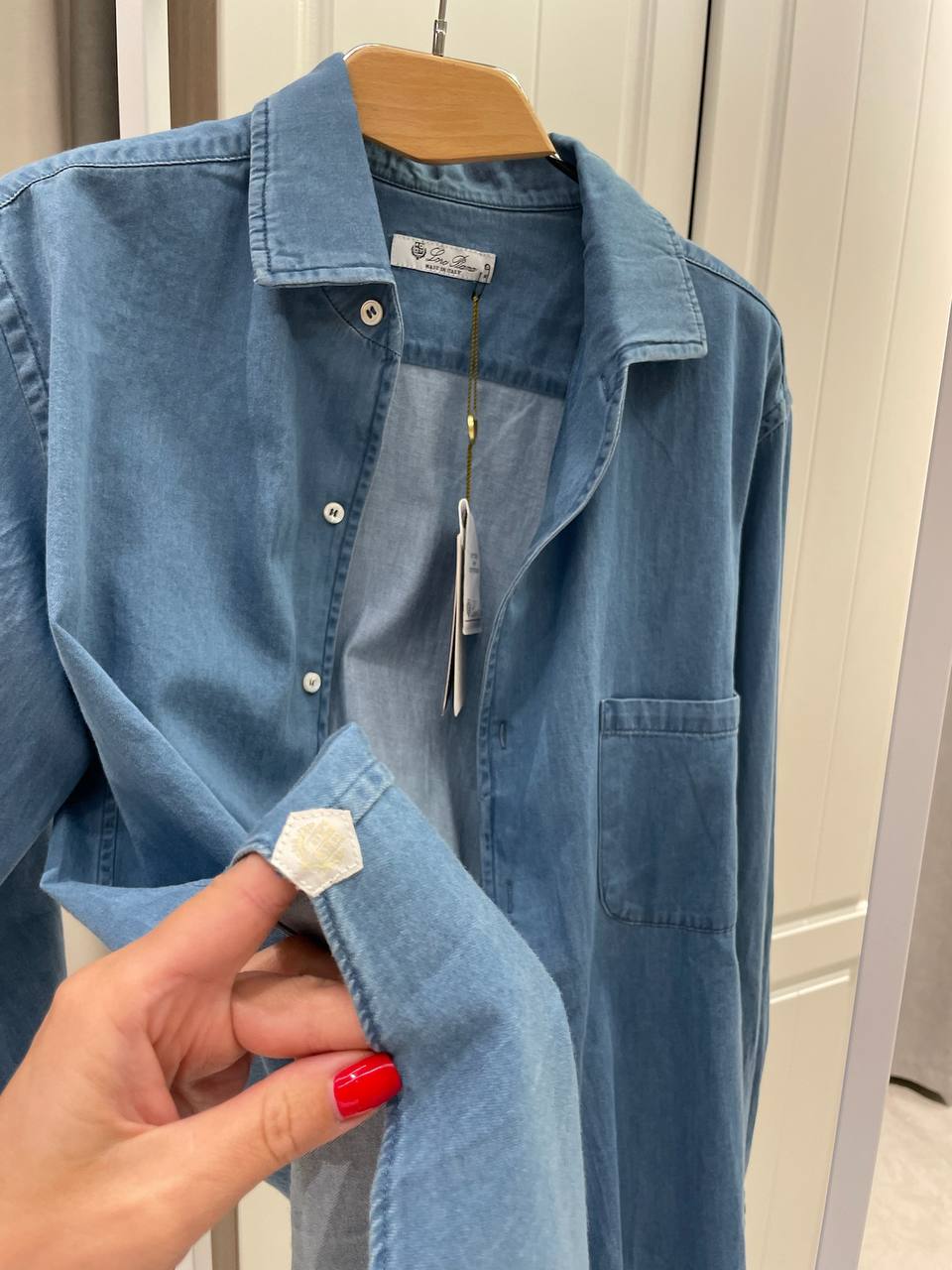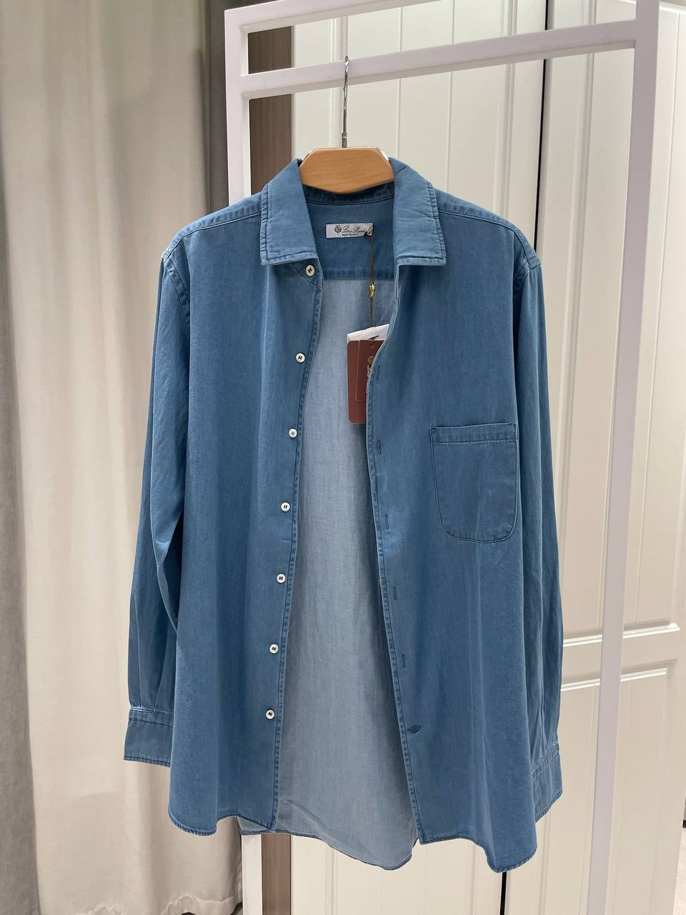 Рубашка Loro Piana LUX-119624 - это стильная деним-рубашка с длинными рукавами. Она выполнена в светло-синем цвете, имеет классический воротник и один нагрудный карман. Идеально подходит для повседневного ношения, сочетая в себе комфорт и элегантность.