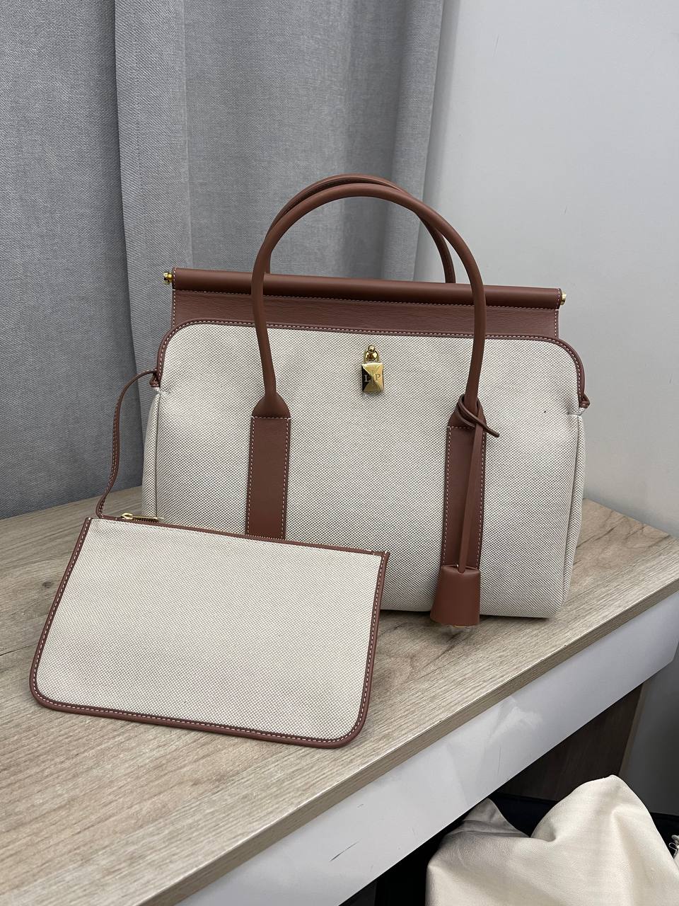 Женская сумка Loro Piana LUX-110823 – это элегантный аксессуар в классическом стиле. Светлый основной цвет сумки гармонично сочетается с коричневыми кожаными деталями, создавая изысканный контраст. Сумка предназначена для повседневного использования и подчеркнет ваш безупречный вкус.
