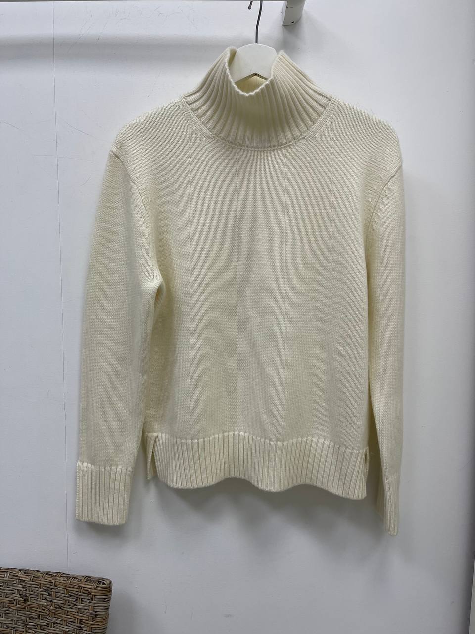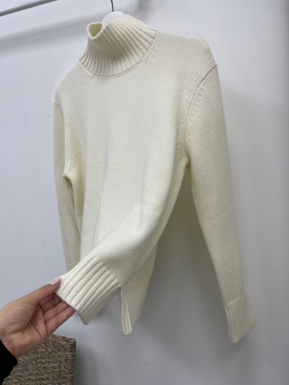 Свитер Loro Piana LUX-83954, представленный на изображении, – это элегантный свитер кремового цвета с высоким горлом. Он выполнен в классическом стиле, что делает его универсальным для различных образов. Текстура свитера выглядит мягкой и приятной на ощупь, что предполагает комфорт при носке.