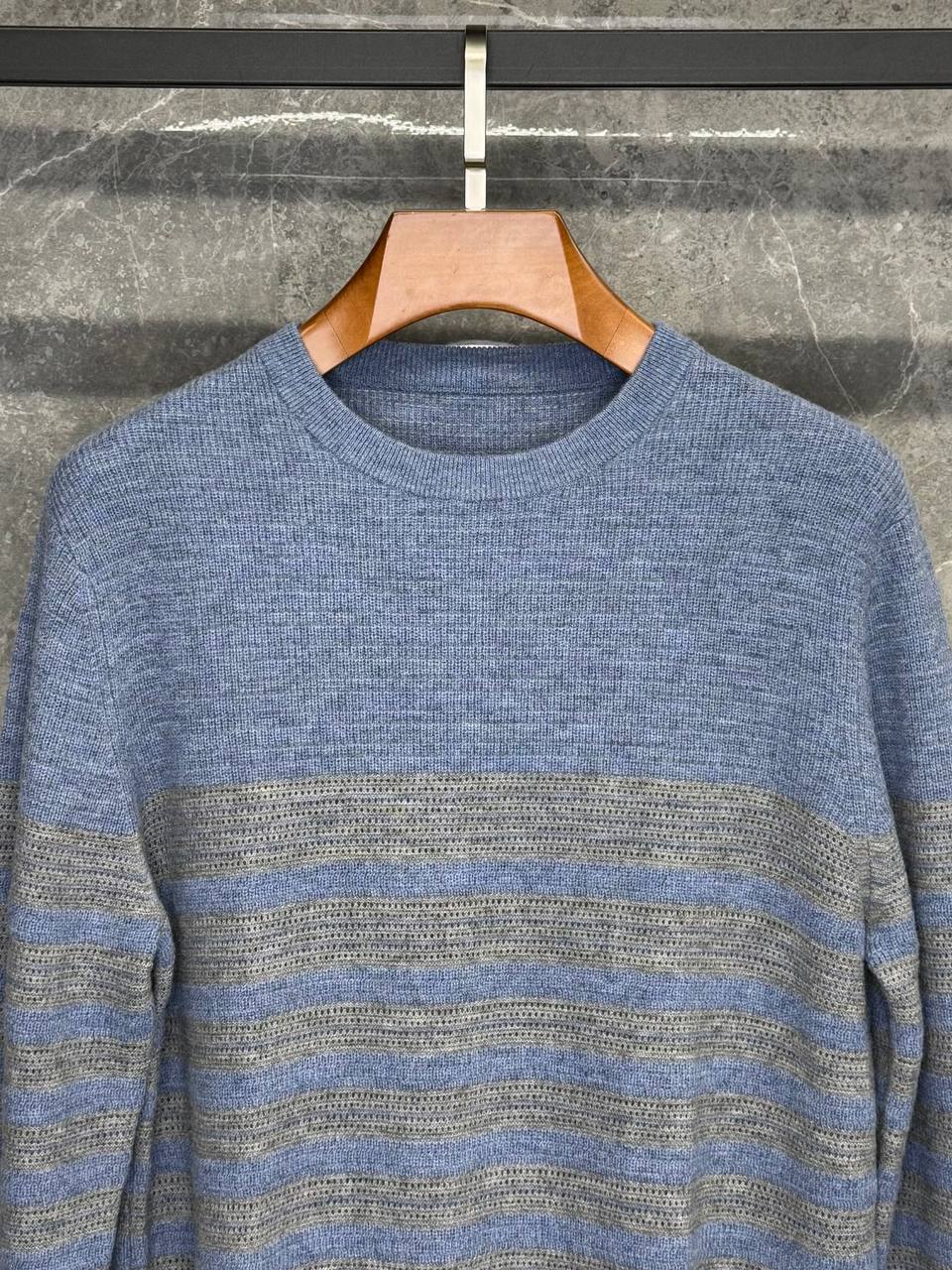 Свитер мужской Loro Piana LUX-124846 - это стильный и комфортный предмет гардероба. Он выполнен в лаконичном дизайне с горизонтальными полосами, что делает его отличным выбором для повседневной носки.