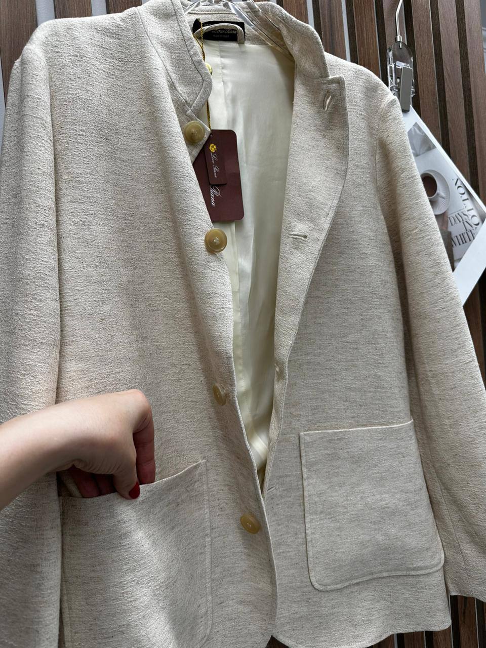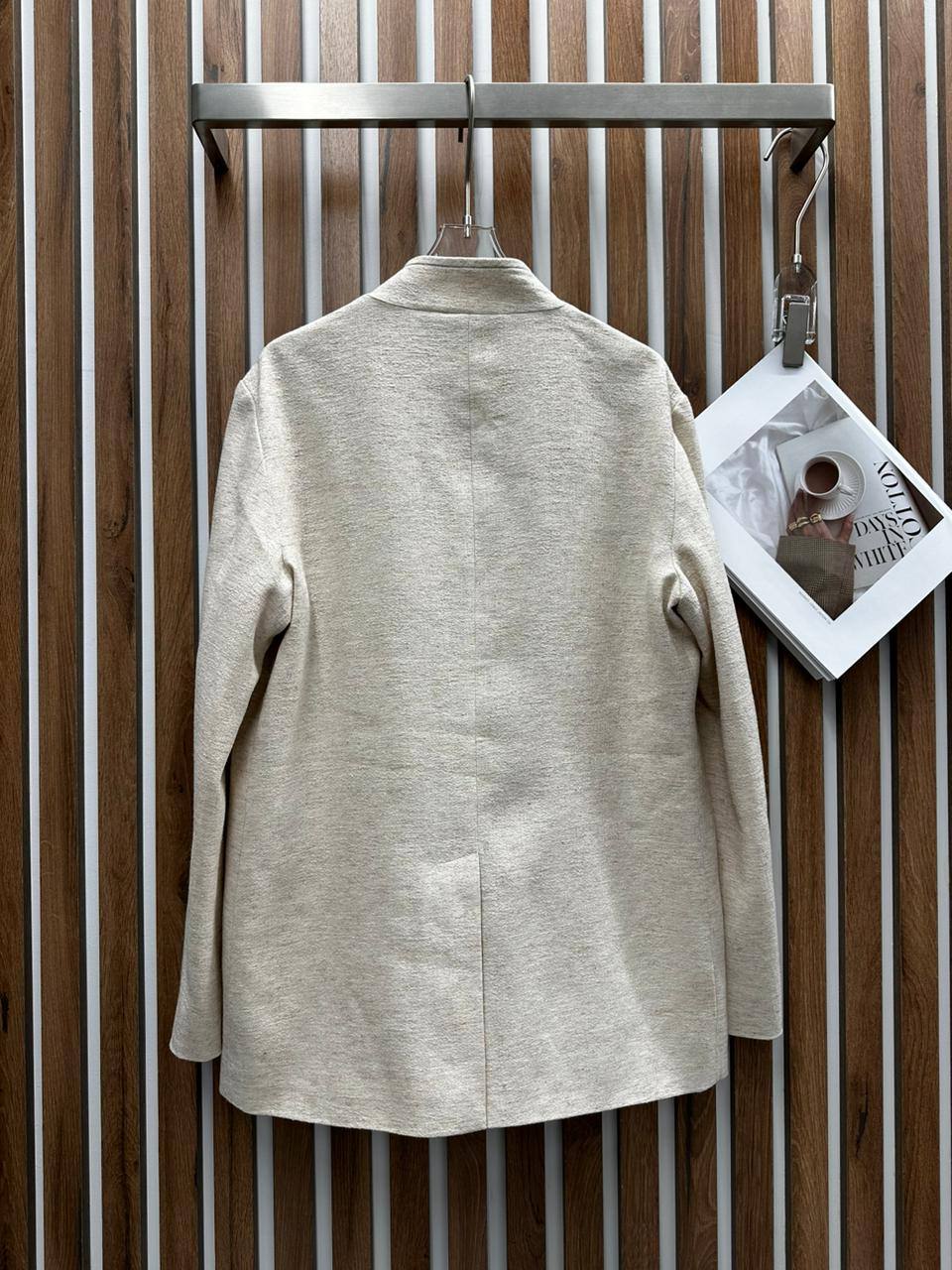 Жакет Loro Piana LUX-106432 — это элегантный предмет гардероба. Жакет выполнен в классическом стиле, с воротником-стойкой, имеет спокойный бежевый цвет. Идеально подходит для создания стильных и изысканных образов.