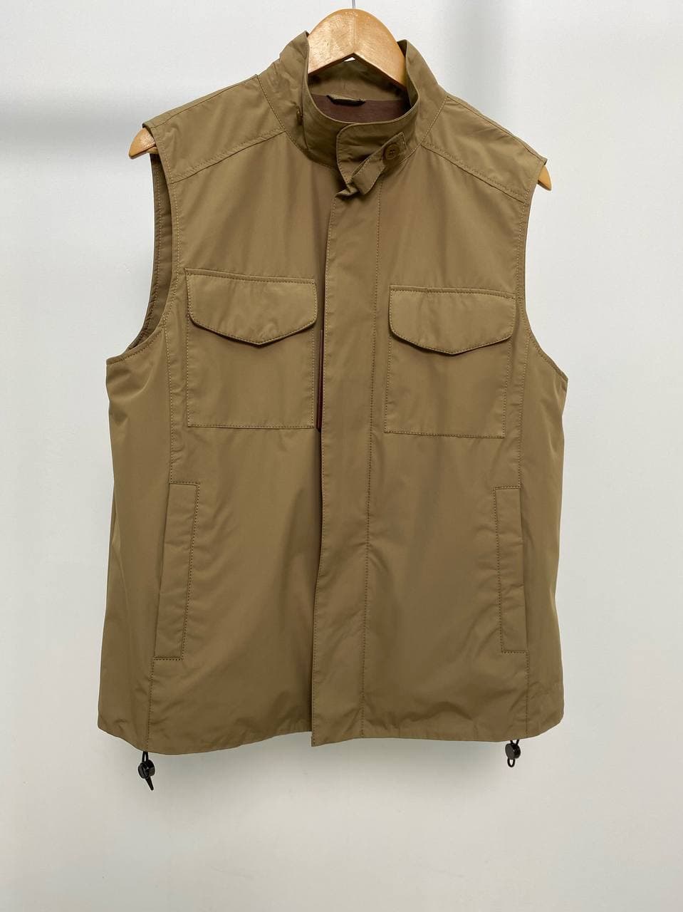 Жилет Loro Piana LUX-52050 — это стильное и практичное изделие, сочетающее в себе элегантность бренда и функциональность. Этот мужской жилет выполнен в спокойном оттенке хаки, что делает его универсальным дополнением к повседневному гардеробу. Лаконичный дизайн с двумя нагрудными карманами и удобной застежкой делает его идеальным выбором для создания многослойных образов.