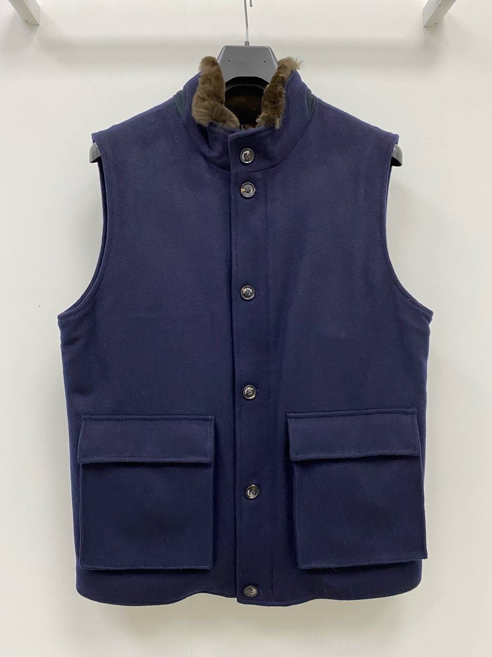 Жилет Loro Piana LUX-78142 — это элегантный предмет гардероба, выполненный в классическом стиле. Жилет представлен в насыщенном темно-синем цвете с отделкой воротника из натурального меха. Лаконичный дизайн делает его универсальным для различных образов.