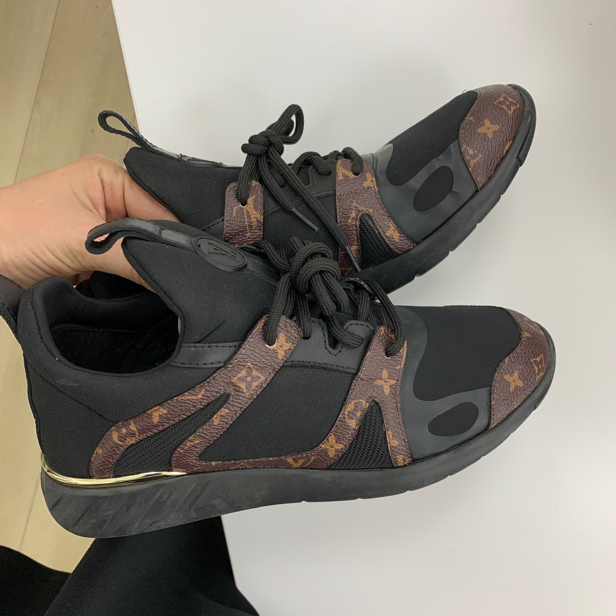 Эти женские кроссовки Louis Vuitton Aftergame ОЖ-506 сочетают в себе спортивный стиль и узнаваемый дизайн бренда. Модель выполнена в черном цвете с коричневыми элементами, украшенными монограммой Louis Vuitton, что придает ей роскошный вид. Удобная посадка и продуманная конструкция делают эти кроссовки идеальным выбором для повседневного ношения.